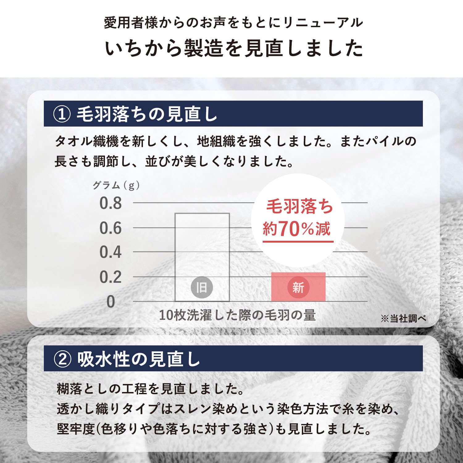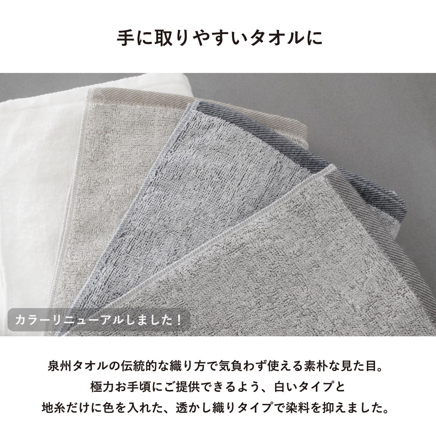 【お肌の弱い方も安心】タオルの産地、泉州で織られた安心の綿100%タオル。お肌の弱い方・お子様にも安心してお使いいただけます。