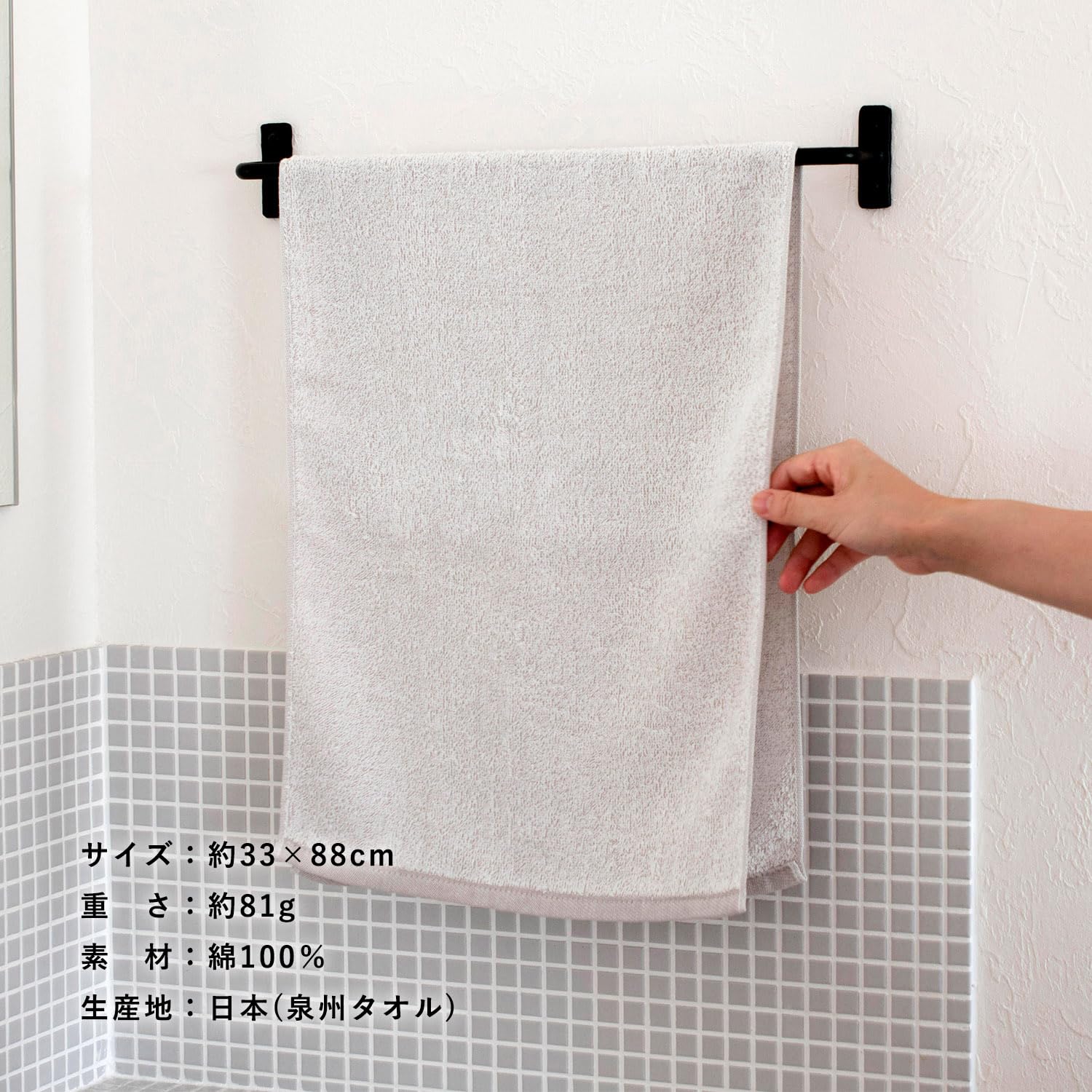 どのシーンでも活躍できるスタンダードな泉州産のフェイスタオル。サイズ:約33×88cm、約81g、生産地:泉州/大阪
