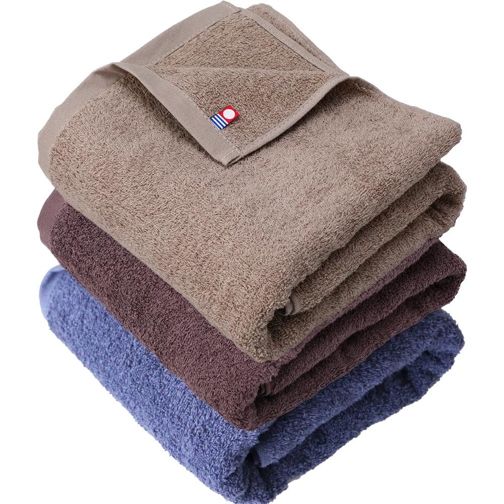 imaa(アイマ) 今治タオル 認定 バスタオル ふわふわ 薄手 吸水速乾 日本製 綿100% 真空圧縮パック ライトブラウンxブラウンxネイビー