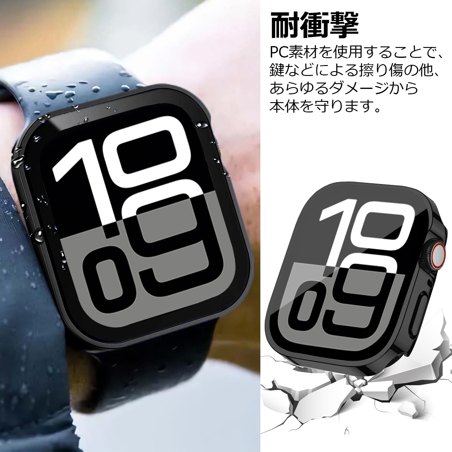 【全面保護&耐衝撃】 PC素材を使用することで、鍵などによる擦り傷の他、あらゆるダメージから本体を守ります。液晶面全体を保護する安心の構造で、普段使い程度の衝撃では、Apple Watch 本体に傷がつくことはほとんどありません。対応モデル:Apple Watch Series 11/10,46mm