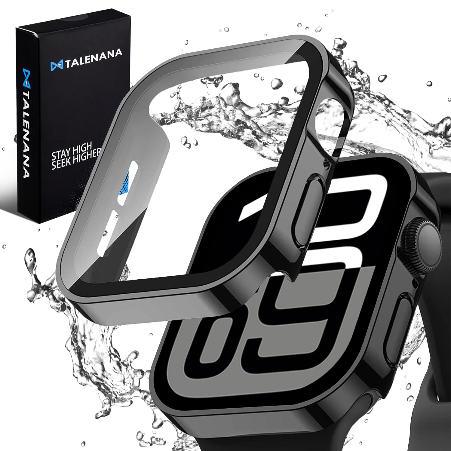 【特価処分】TALENANA for Apple Watch防水ケース 46/42mm アップルウォッチ保護ケース 強化ガラスフィルム メッキ加工 一体型 対応Apple Watch Series 11/10 42mm 全面保護 耐衝撃 3D直角エッジデザイン PC素材 高タッチ感度 衝撃吸収 取付簡単 アップルウォッチ アクセサリー(46mmメッキブラック)