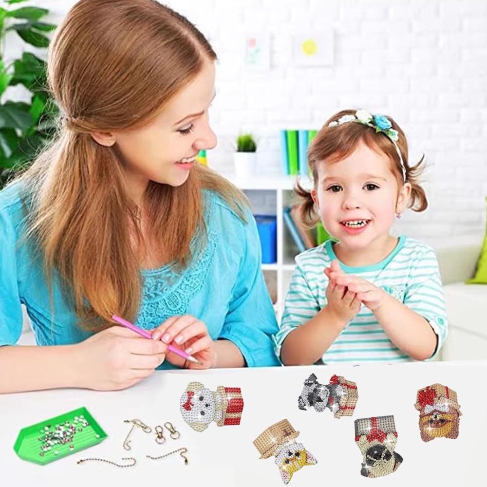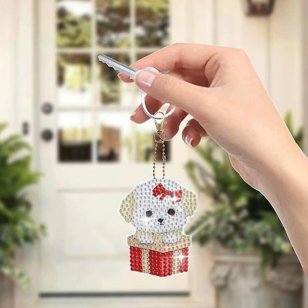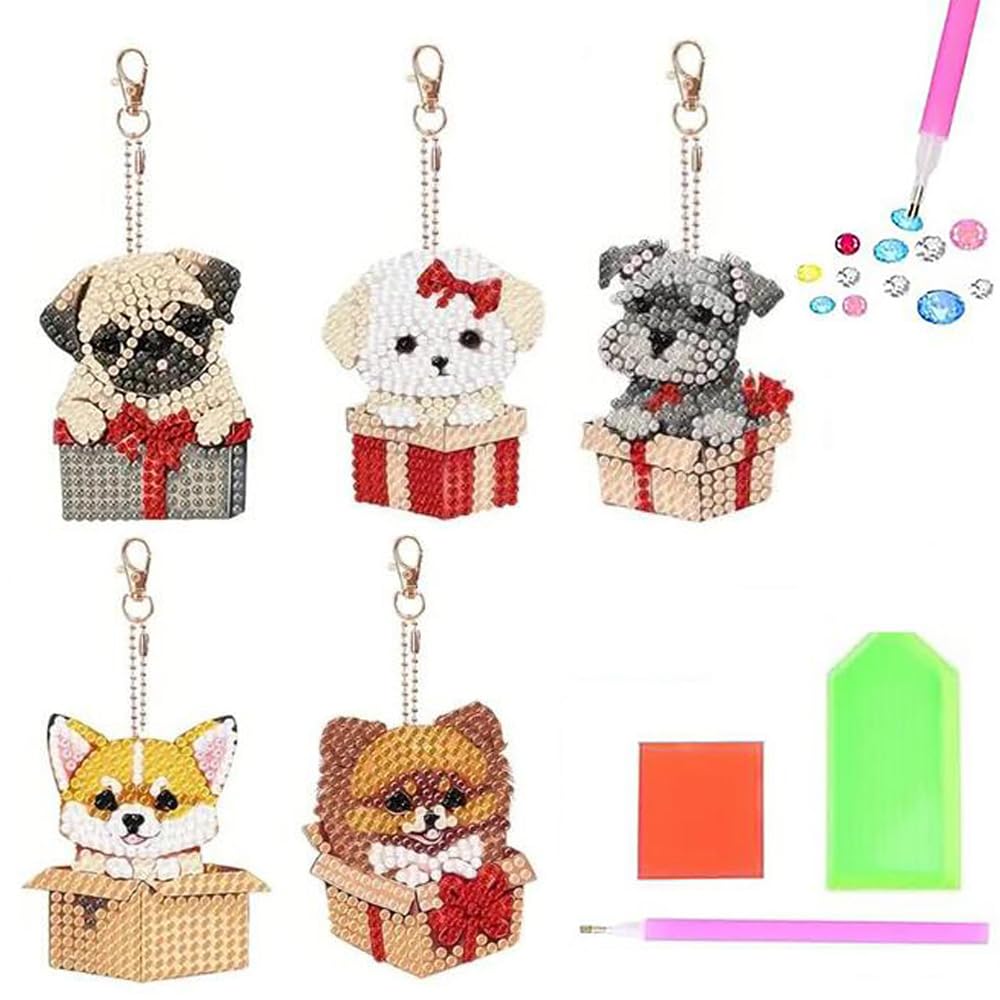 GOODCHI 曼荼羅 ダイヤモンドアート キーホルダー 両面全貼り付け ビーズアート 8点セット 塗装キット 可愛い キラキラ 人気 手作りDIY クラフト用品 (犬)