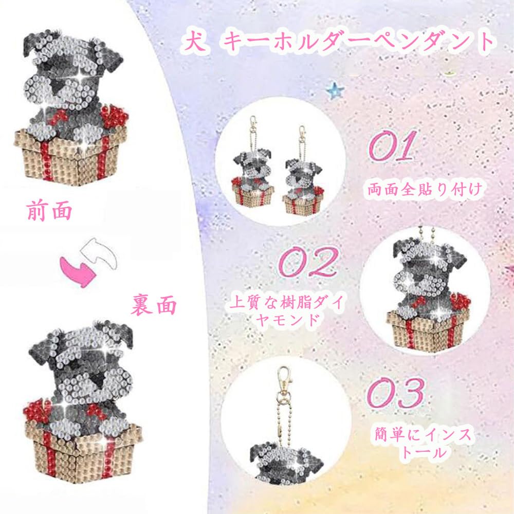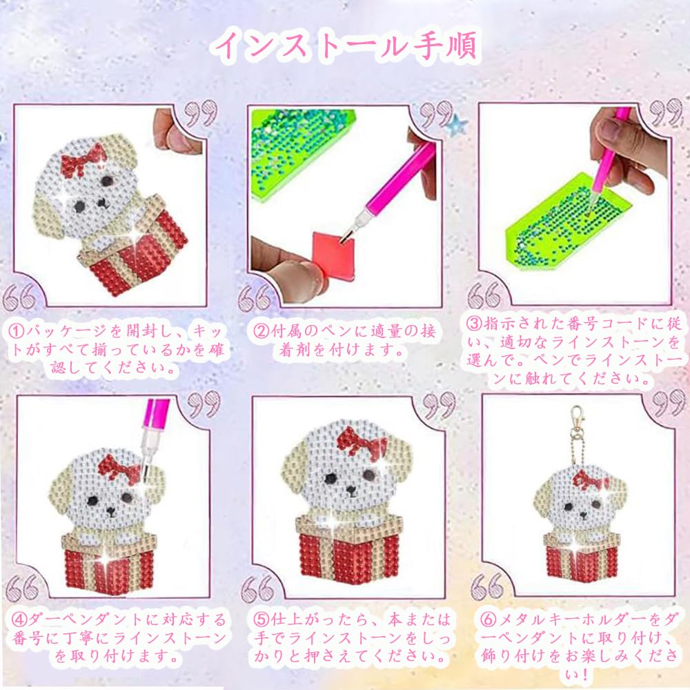 【商品仕様】パッケージ内容:キーホルダー12個、ダイヤモンド塗装工具。サイズ:6cm×6cm。