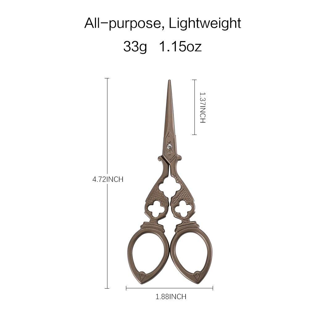 多目的レトロはさみ:素敵で小型な鋏は専門的に刺繍の細工に使用します。このハサミは、縫い目、他の糸、糸切り、ペーパーカッターなどを切り取ることに使用可能です。しかもクロスステッチ、刺繍、DIYの手作業などにも応用可能です。更に持ち運びやすいです。