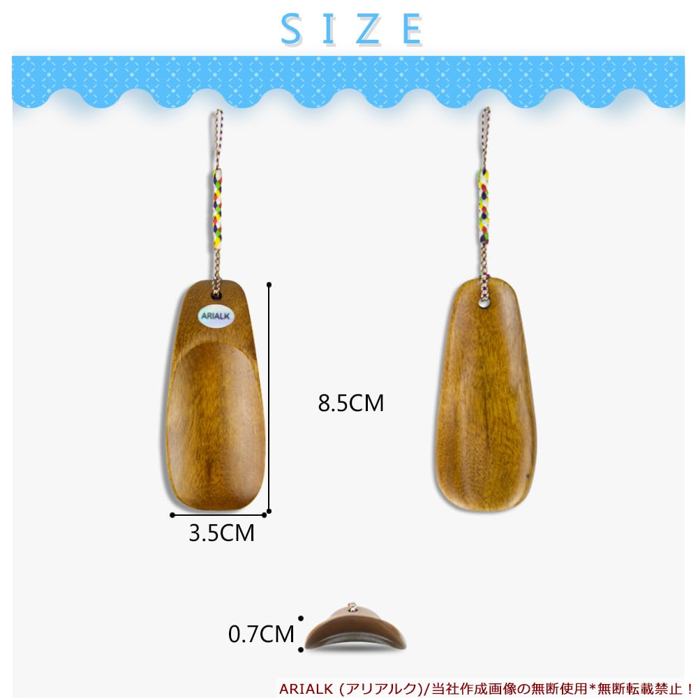 ARIALK (アリアルク) 靴べら 木製 携帯用 くつべら 短ヘラ 軽量 キーホルダー 付き 携帯