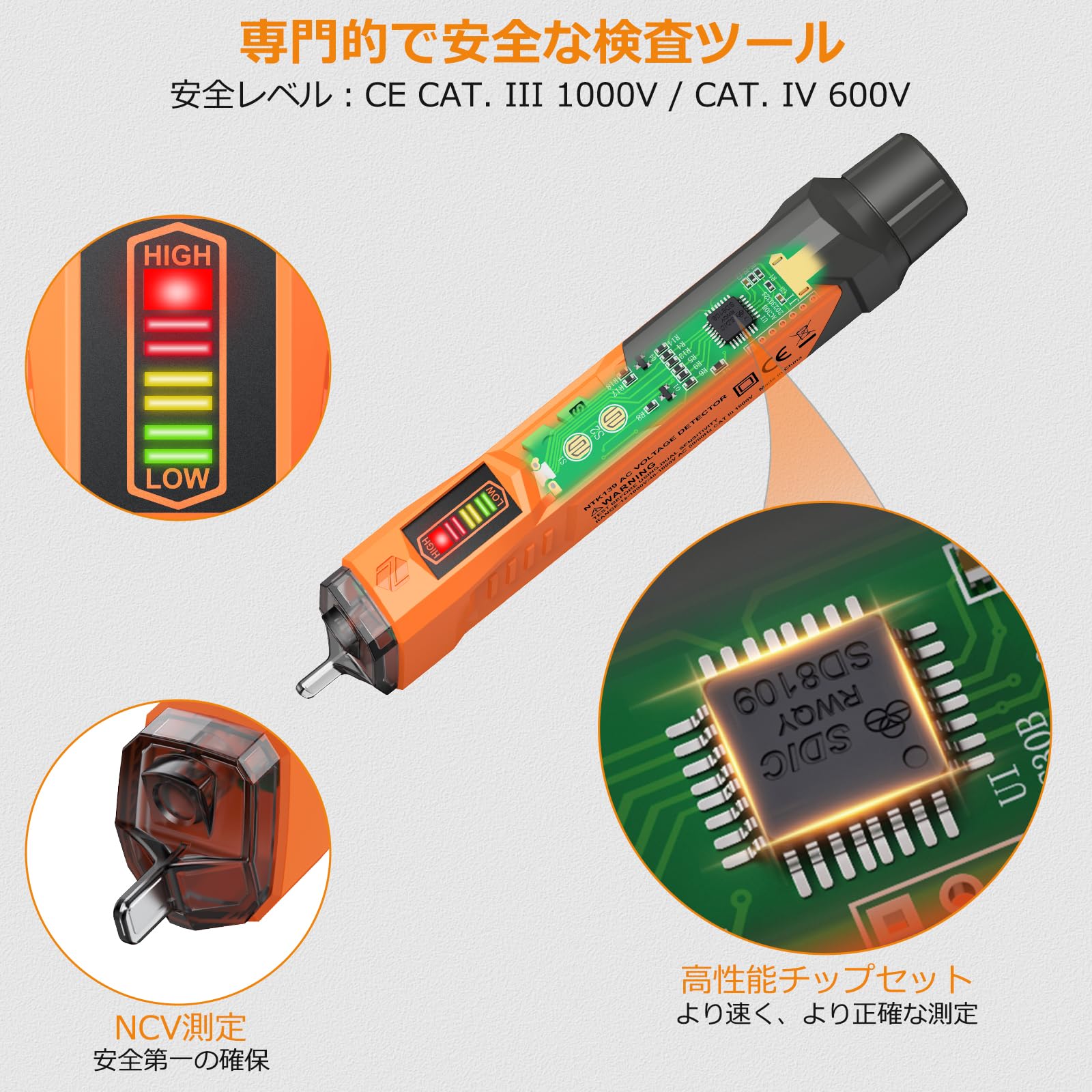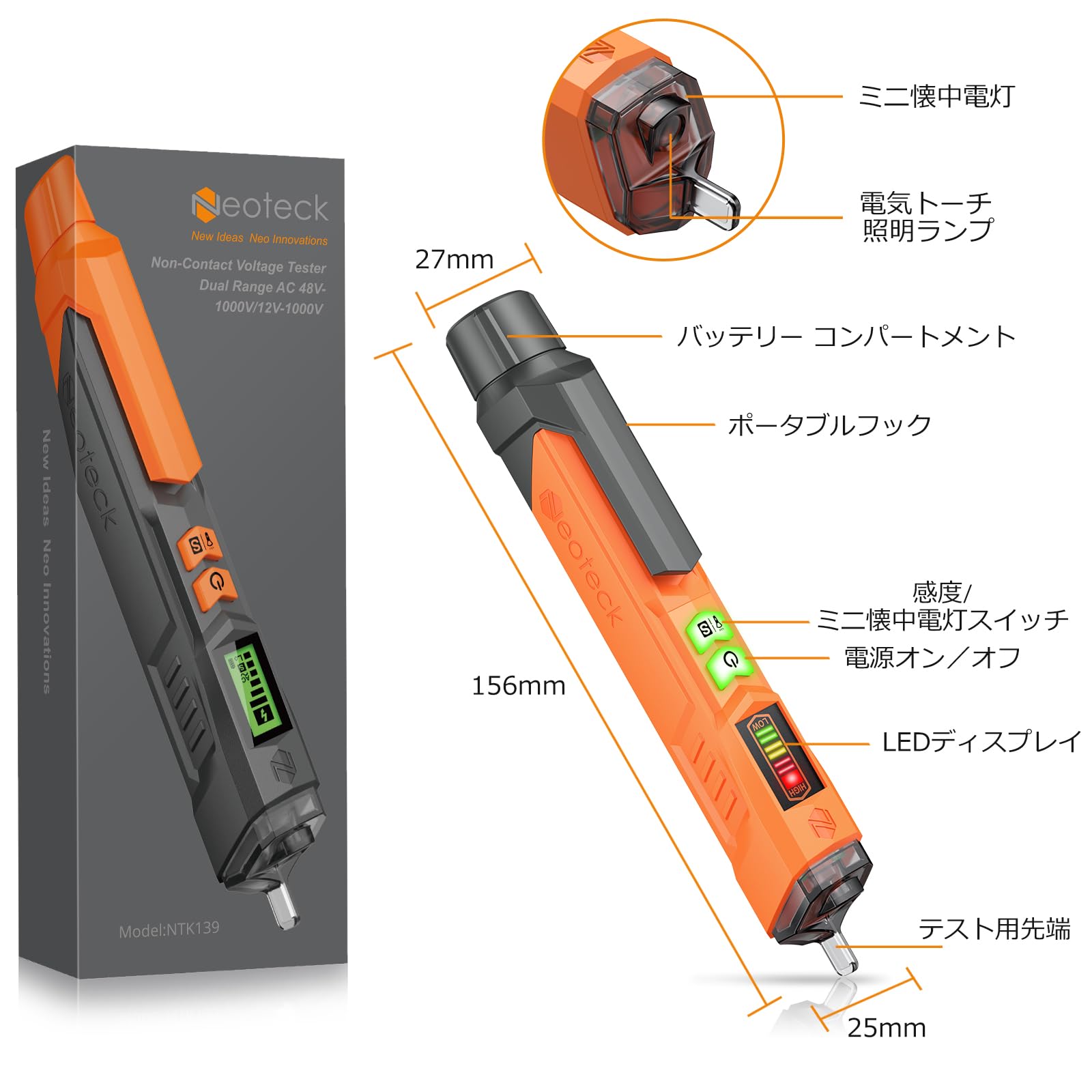 Neoteck 検電器 テスター AC 12-1000V/48-1000V 感度調節 検電ドライバー 懐中電灯付き 通電チェッカー 非接触電圧検出 日本語説明書付き