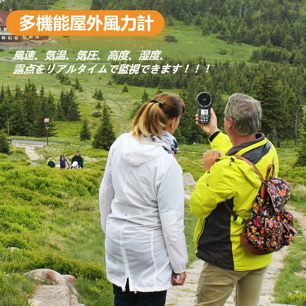 ?【多機能屋外風力計】BT100WM風速計は風速、風の寒さ、温度、湿度、露点、気圧、高度を正確に測定します。釣り、ボートセーリング、カイトフライング、サーフィン、サイクリング、ドローン飛行、登山、射撃などのアウトドアアクティビティに最適です。