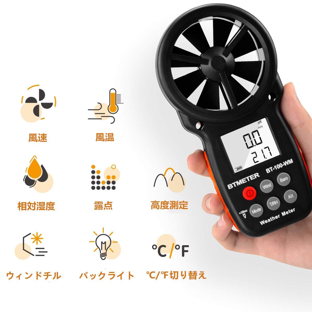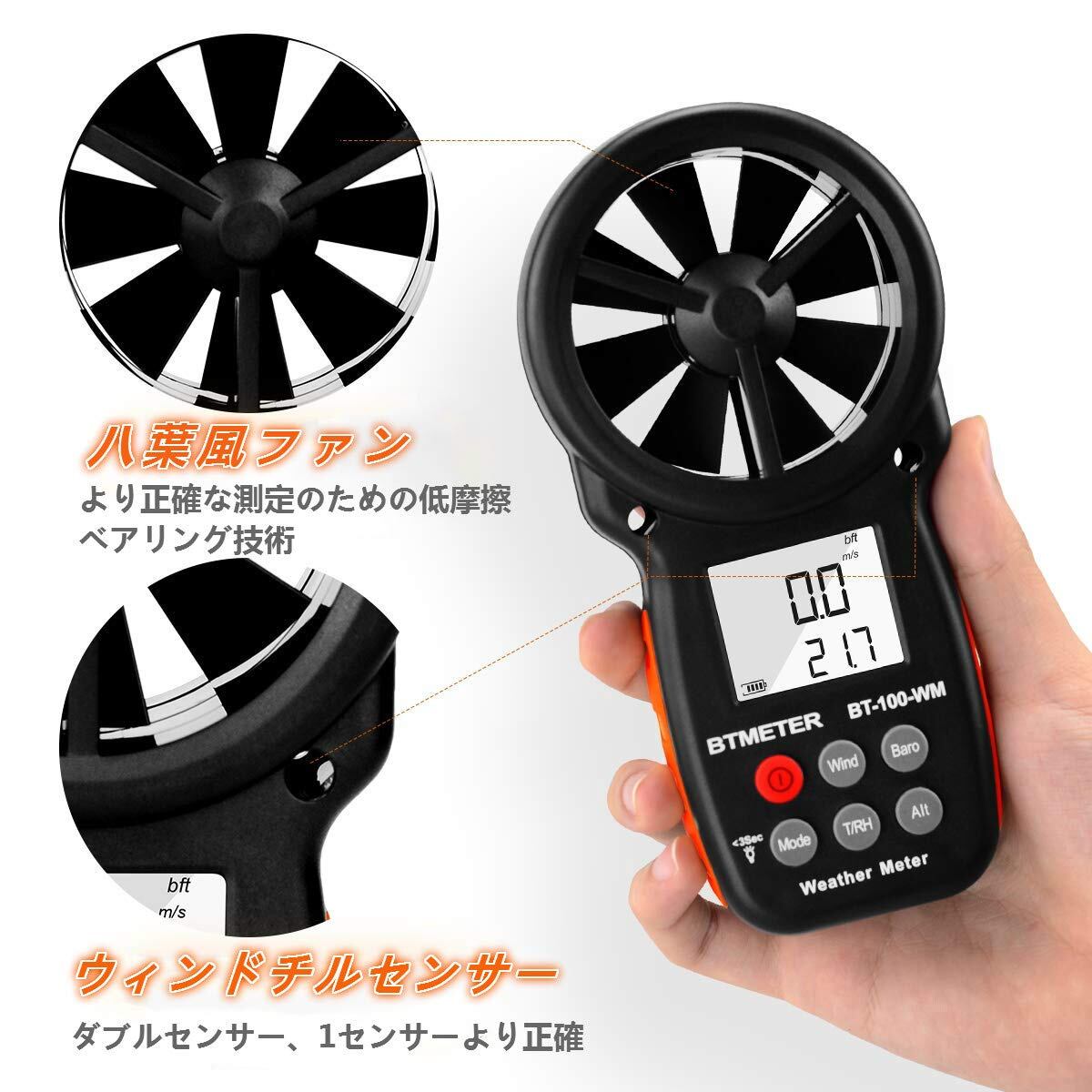【新着特価】BTMETERデジタル風速計 風量計 風力計 気圧計 BT-100WM圧力計 風速&温度同時計測 風速風向計 簡易風量/高度/相対湿度/露点/大気測定 ドローンの飛行 登山 自動OFF バックライト HVAC CFM ストラップ&ドライバー付き 日本語説明書付き
