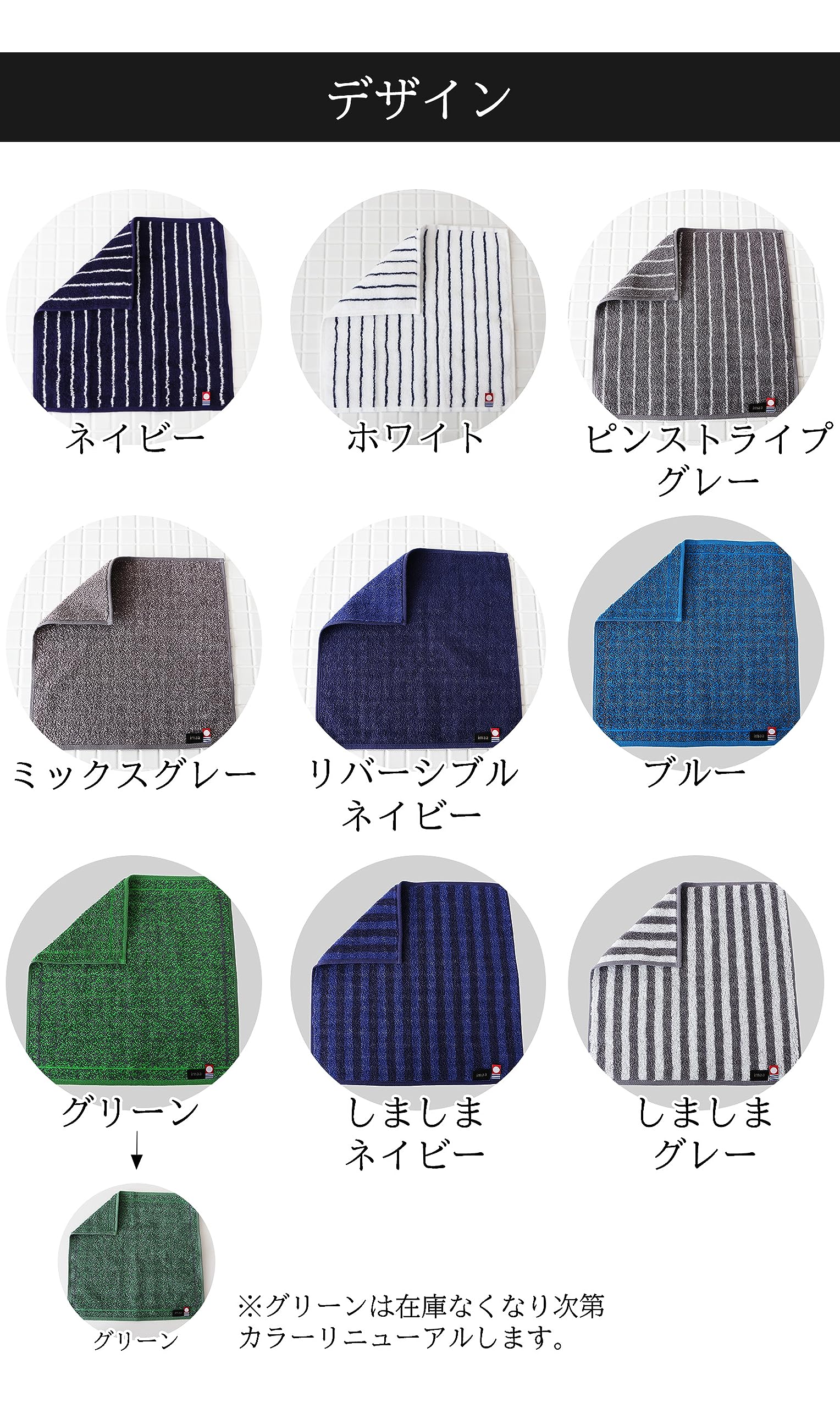 サイズ:約25cm×25cm 重量:約25g/枚 デザイン(認定番号):ネイビー(第2021-1129号)、ホワイト(第2022-1032号)、ミックスグレー(第2021-918号)、ピンストライプグレー(第2021-917号)、リバーシブルネイビー(第2022-1326号)、ブルー・グリーン(第2022-1325号)、しましまネイビー・しましまグレー(第2022-2634号)、テールグリーン・ブラック(第2023-2689号)、無地Aアソート4枚(第2021-945号) 素材:綿100% 生産地:日本(愛媛県今治市) ※モニターの発色の具合により実際のものと色が異なる場合がございます。 ※清潔でコンパクトな圧縮パックでお届けいたします。開封してしばらくすると空気を含み、元の状態に戻ります。配送状態により元に戻っている場合がございます。