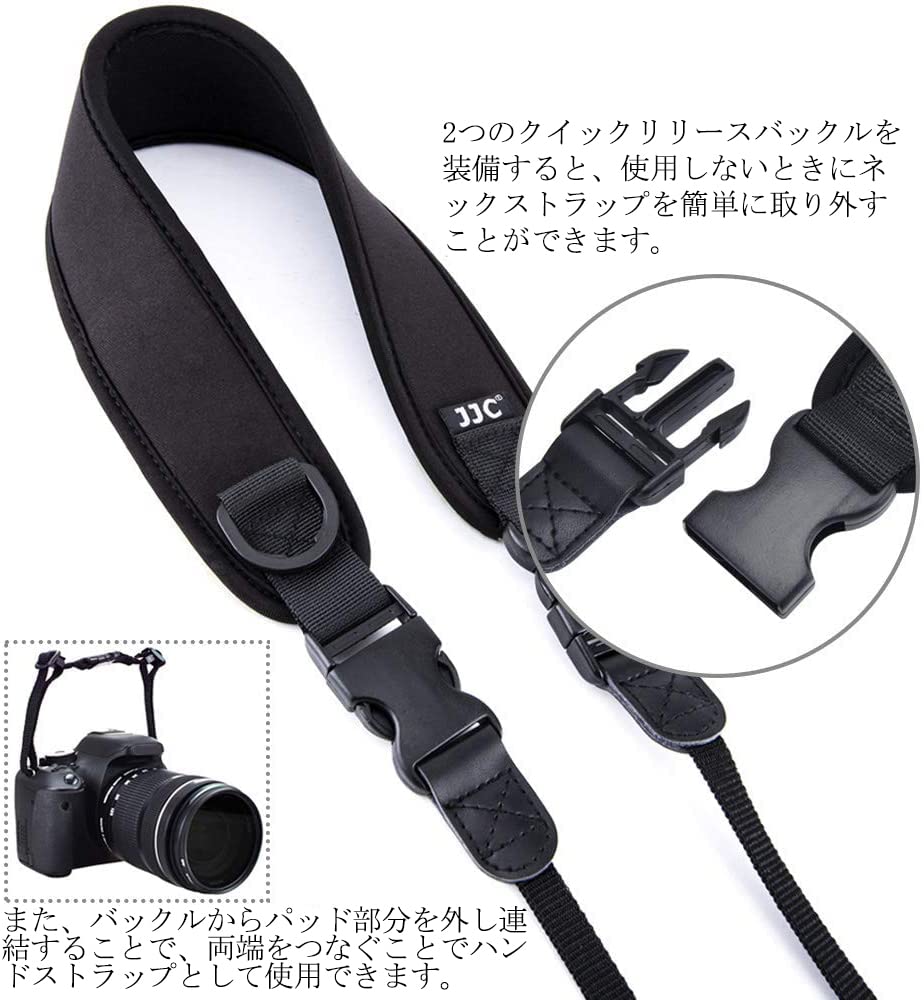 [JJC] ネオプレン製 カメラストラップ カメラ ショルダーストラップ ネックストラップ 滑り止め 長さ調節可能 一眼レス/ミラーレス カメラ対応 富士フイルム X-T30II キヤノン R5 R6 R7 R RP 5D Mark IV III 6D 7D Mark II 90D 80D 70D ニコン Z f Z7 II Z6 II Z5 Z30 Z50 Z fc D850 D750 など適