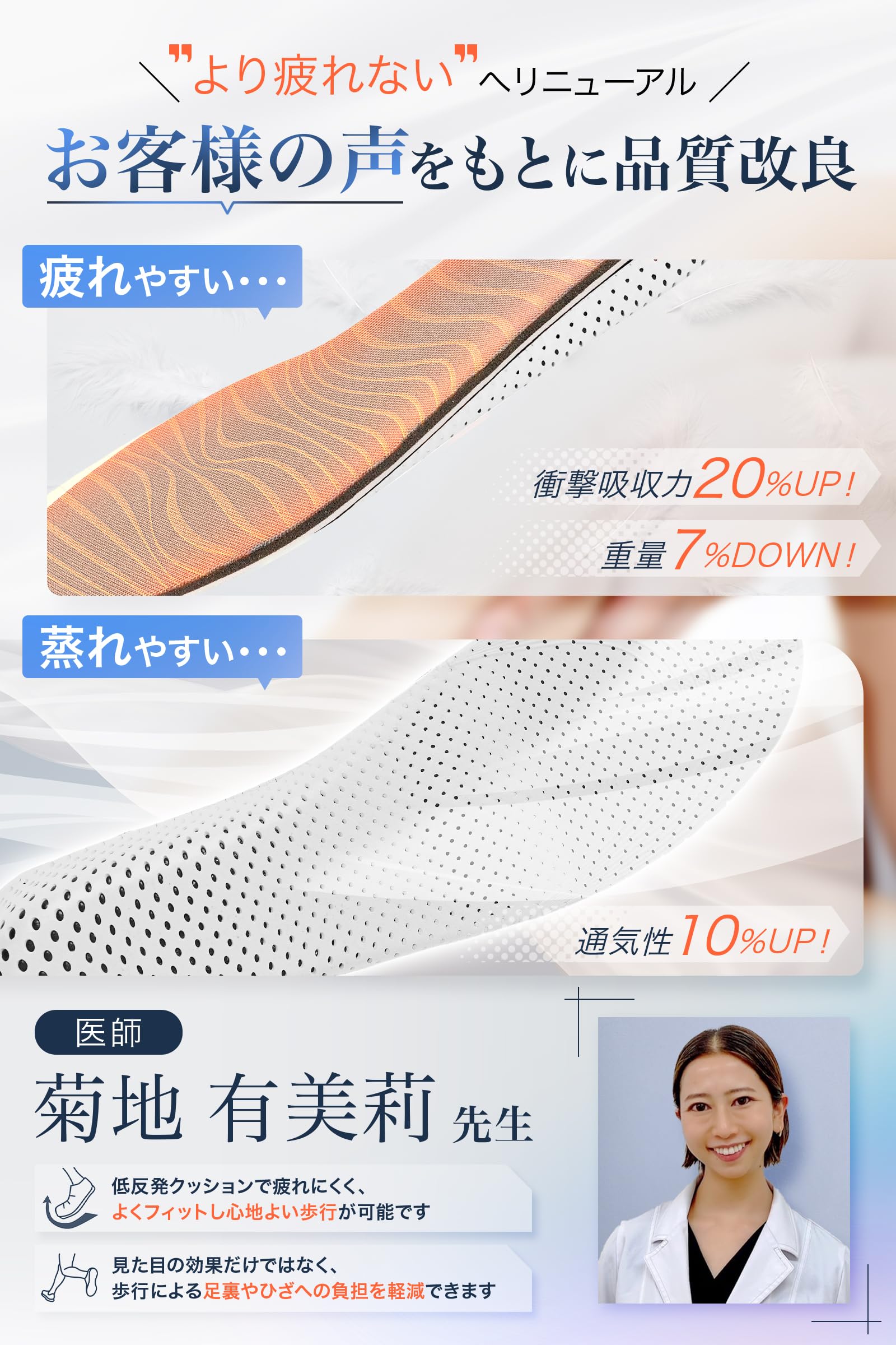 【医師のお墨付き】Helcynasのシークレットインソールは医師が監修し認めた逸品です!「見た目の効果だけではなく、歩行による足裏、膝への負担を軽減できます」「低反発クッションで疲れにくく、ぴったりフィットし、心地よい歩行が可能です」と自信をもって勧めています。