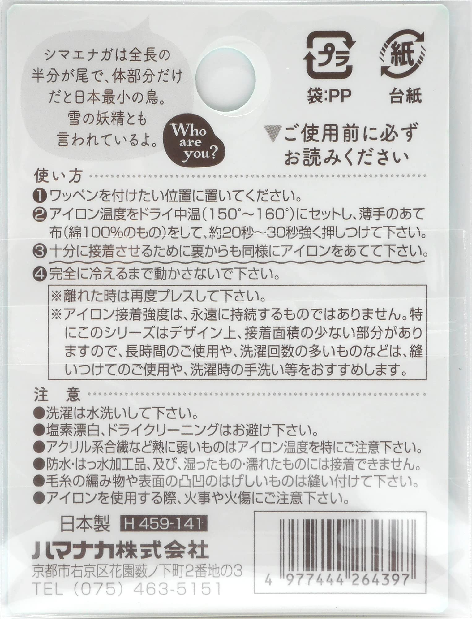 ハマナカ ワッペン Who are you? フーアーユーワッペン シマエナガ H459-141 品番:H459-141 色・柄:シマエナガ 接着方法:アイロン接着 生産:日本製 色 ホワイト, ブランド ハマナカ(HAMANAKA) スタイル ユニークな動物 テーマ 動物 形状 動物型 個数 1 ハマナカ(HAMANAKA)