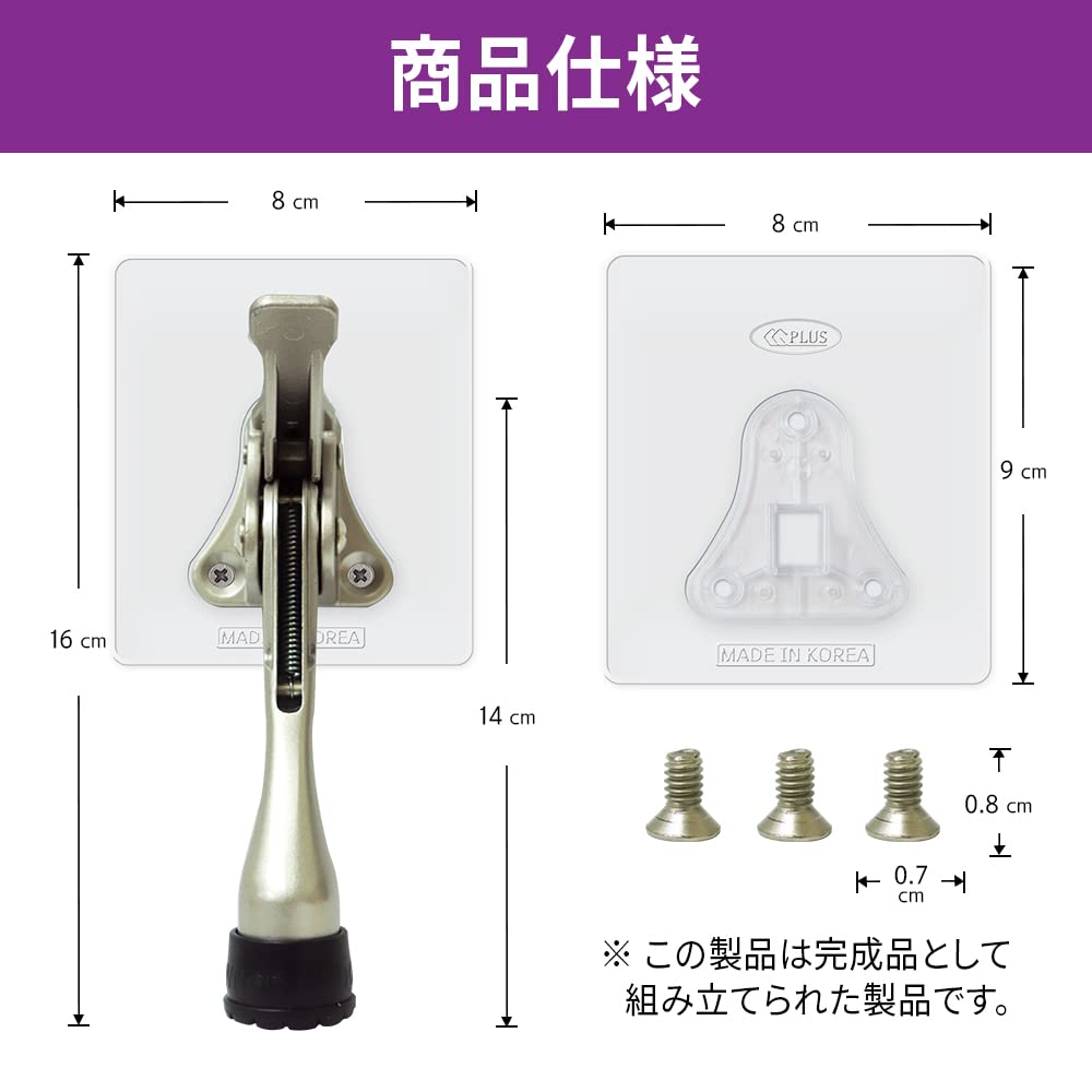 堅牢な構造と優れたサポート????: プレートとドアストッパーを組み合わせた全体のサイズが H160mm x W80mm x D60mmで、強固なサポートを提供します。プレート自体のサイズは80mm x 90mmとなっており、しっかりとした取り付けを実現します。