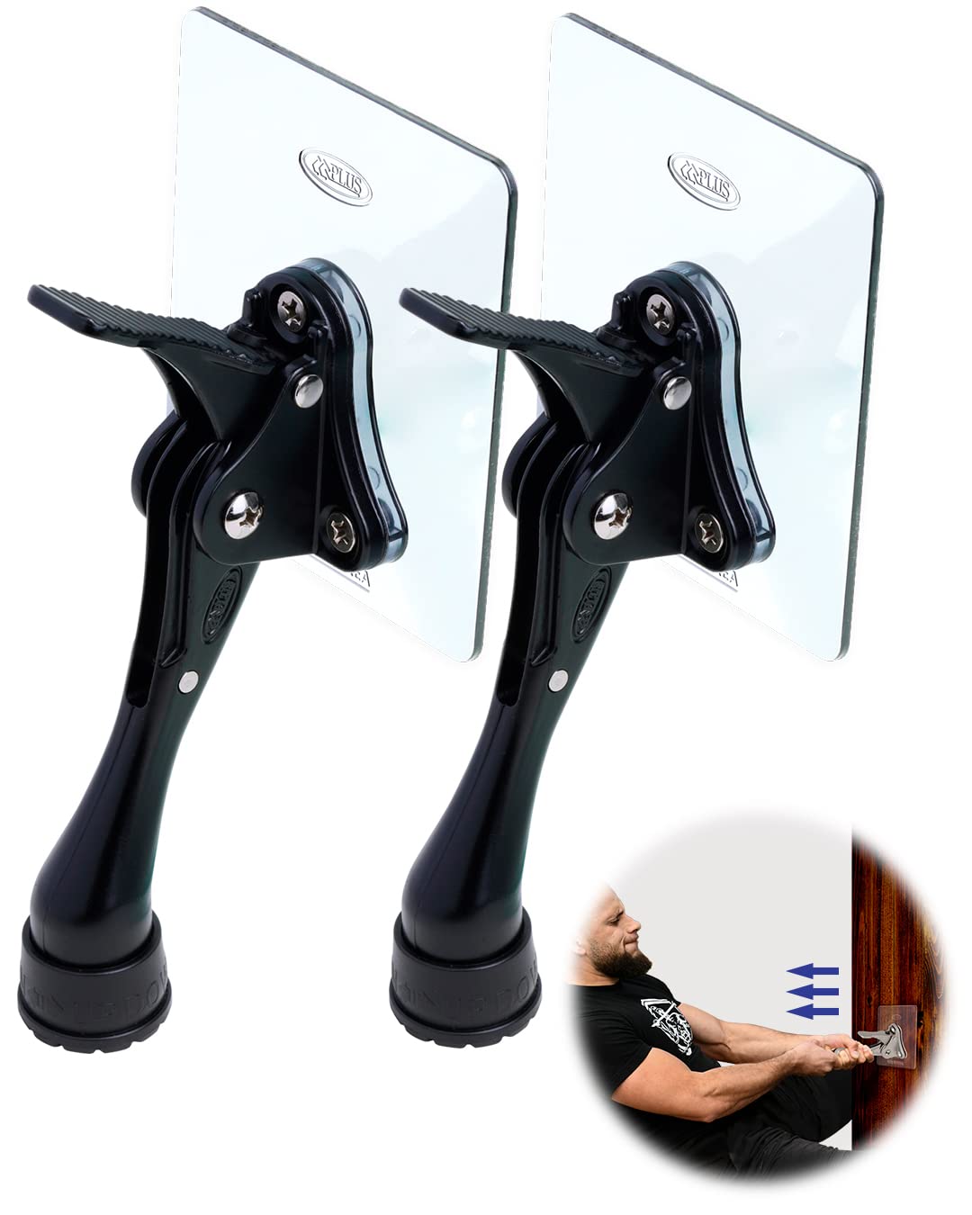 HA SHI ドリル要らずの貼り付け型ドアストッパー, ワンタッチドアストッパー4インチ, ワンタッチキックダウン作動(ブラック 2セット)