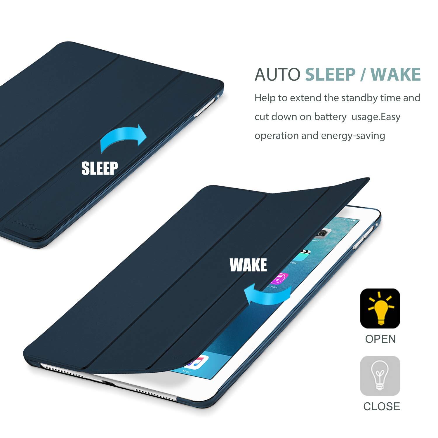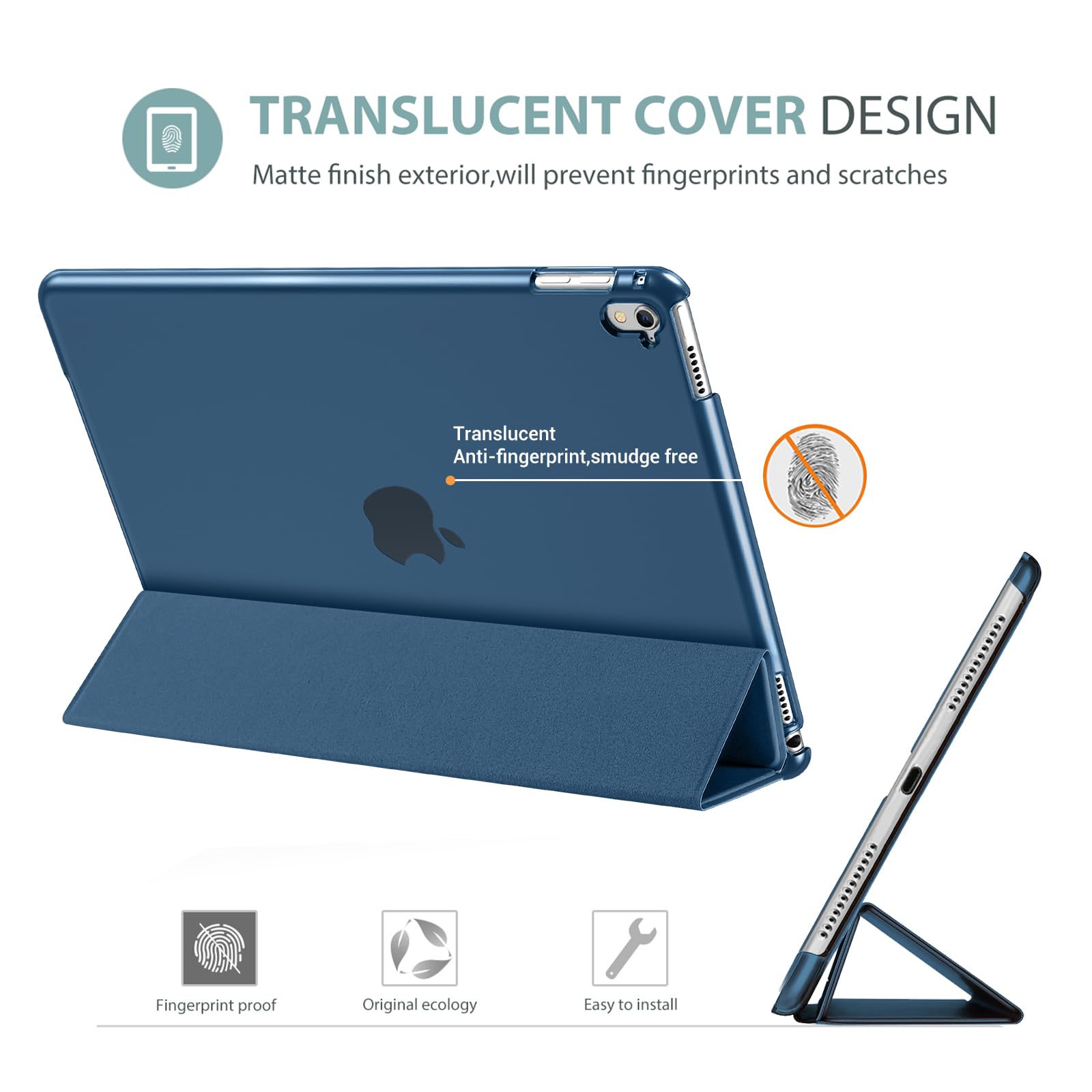 ProCase iPad Pro 9.7ケース スマート 超スリム スタンド フォリオ保護ケース 半透明フロスト バックカバー 対応機種: iPad Pro 9.7 2016 (A1673 A1674 A1675) - ネービー