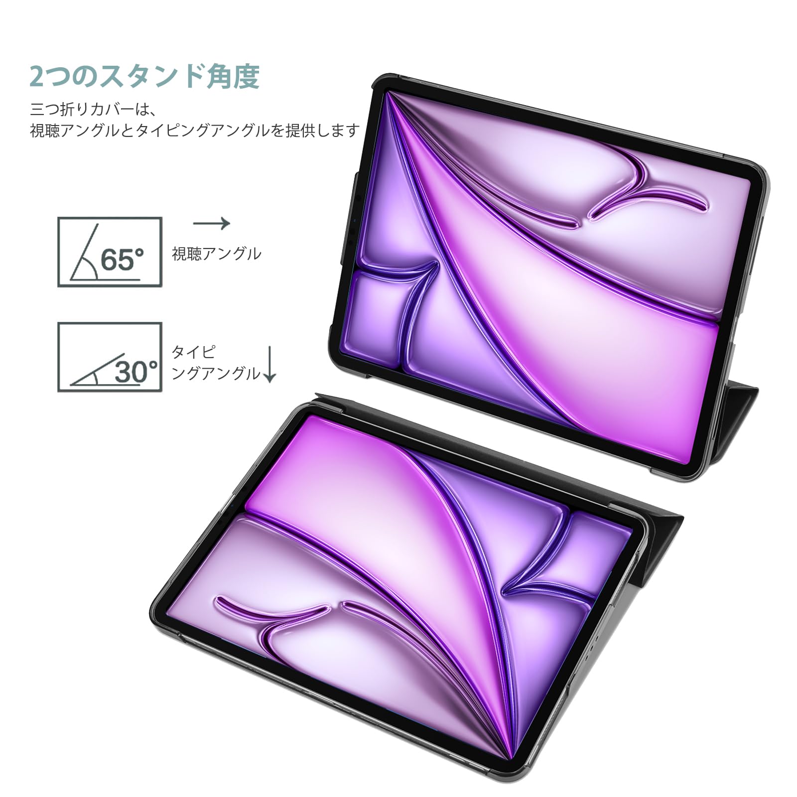 【特価処分】ProCase iPad Air 11インチ ケース M3 (2025) / M2 (2024) / iPad Air 第5世代 / 第4世代 軽量 スタンド 三つ折り フォリオ保護ケース 半透明バックカバー Apple Pencil 2対応 対応端末:iPad air 11インチ M3 (2025)、M2 (2024)、iPad Air5 2022、Air4 2020 - ブラック