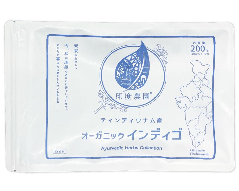 【新着特価】印度(インド)農園 100%オーガニックインディゴ(木藍)パウダー 200g(100g×2個)