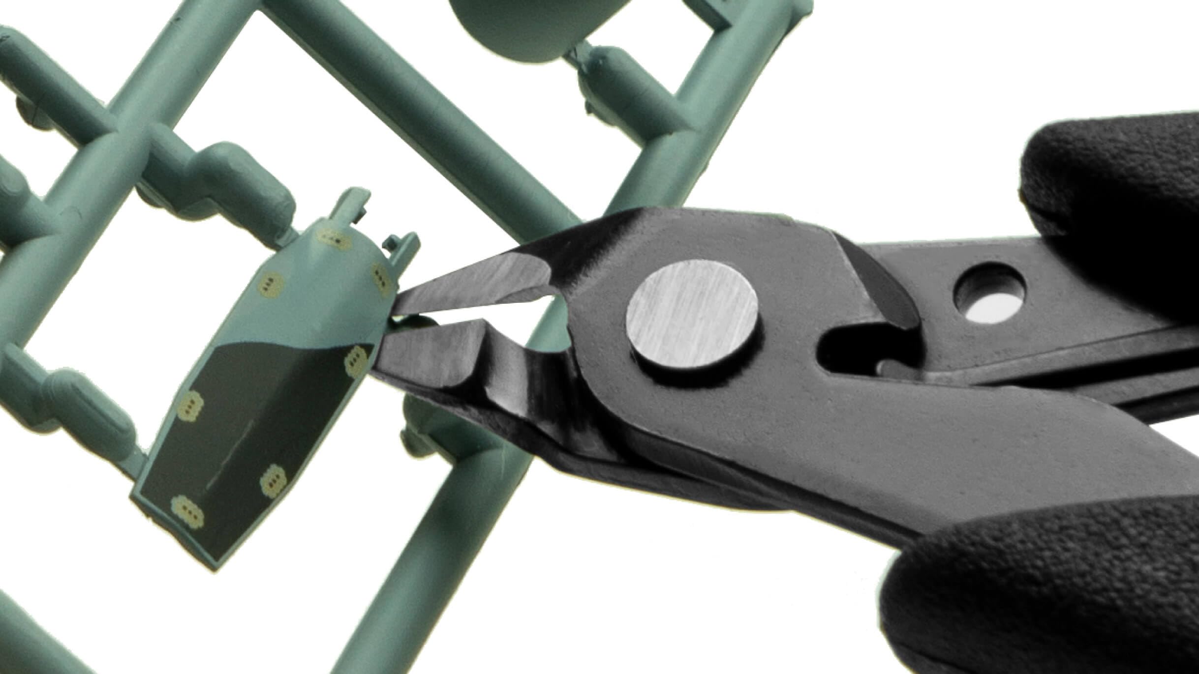 プラモデルや電子工作に最適な薄型軽量ニッパー。重量はわずか45g。板ニッパーで狭い隙間にも入り込む薄型ヘッド仕様。薄刃ニッパーのため切り口もきれいでバリも最小限に抑えられる。小学生のお子様でも扱いやすいサイズ感。プラモデル愛好家も満足の切れ味。新潟県燕三条製