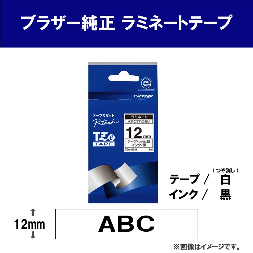 ブラザー工業(Brother Industries)【brother純正】ピータッチ ラミネートテープ TZe-M231 幅12mm (黒文字/白/つや消し)