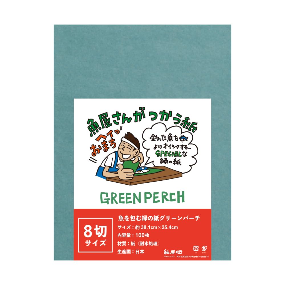 紙屋街 グリーンパーチ紙 38.1cm×25.4cm 8切 100枚 耐水紙 保鮮紙 熟成 薄紙 クッキングシート 魚を包む緑の紙 青紙 グリーンシート 魚を包む緑の紙
