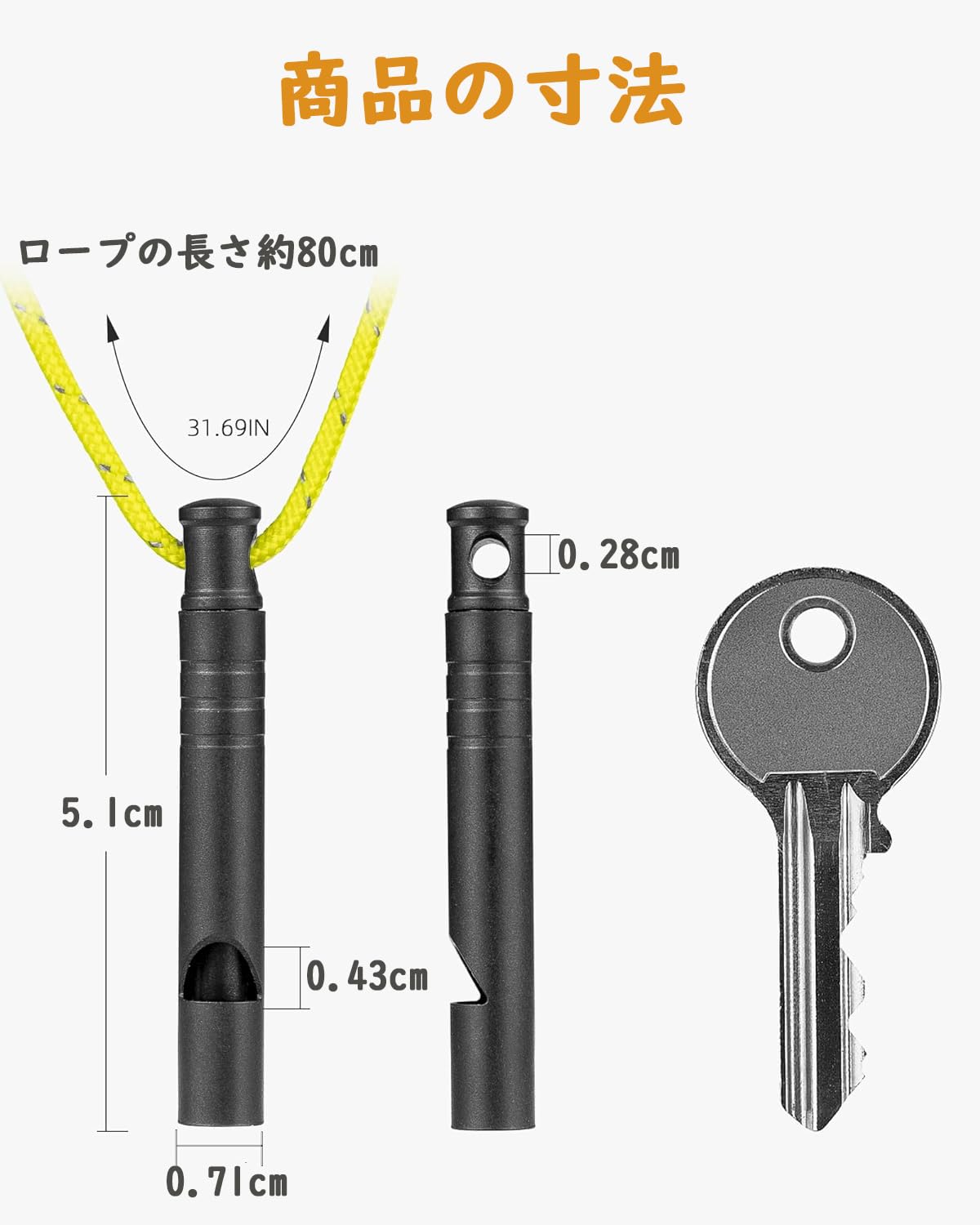 包装内容:チタン製ホイッスル*2+ ロープ*2
