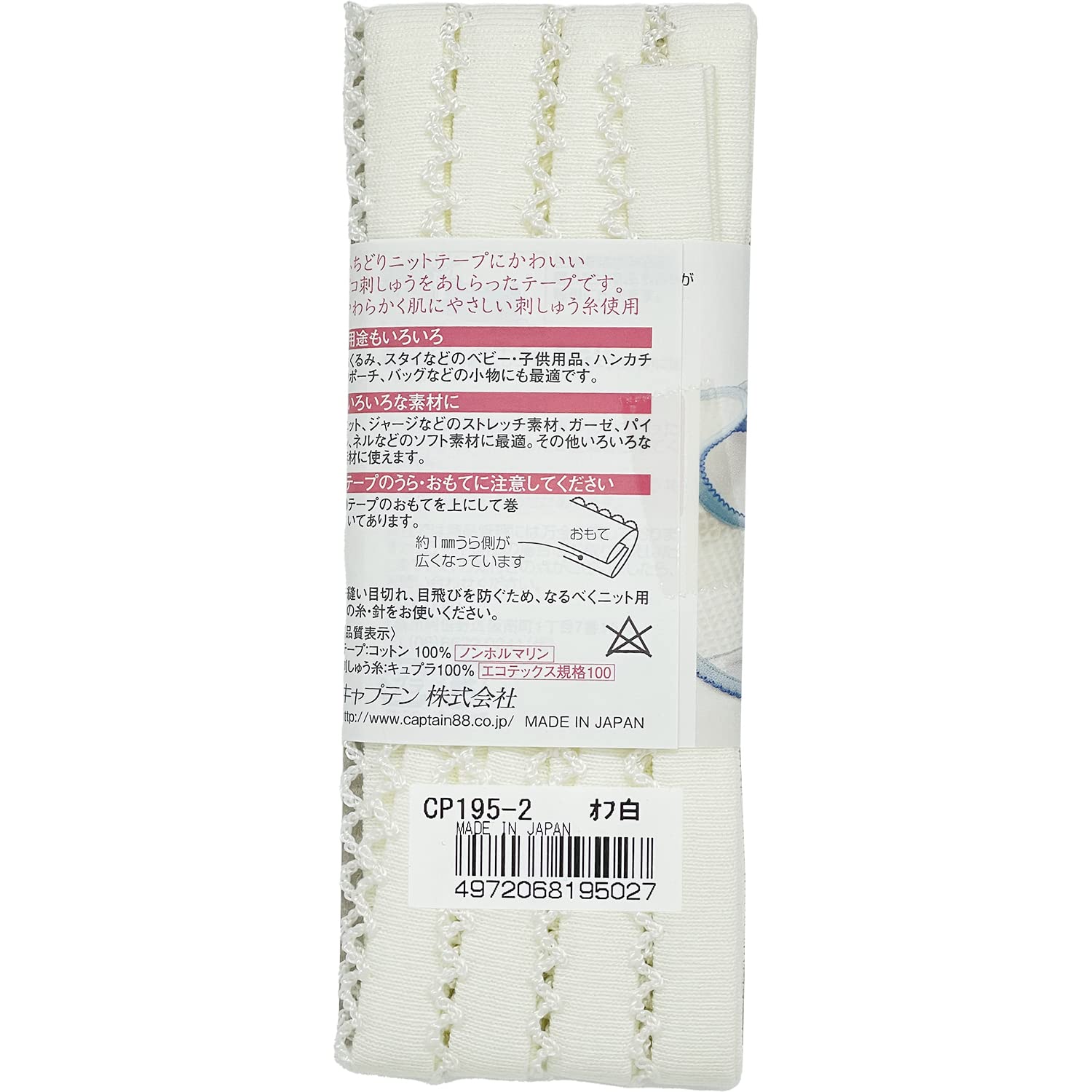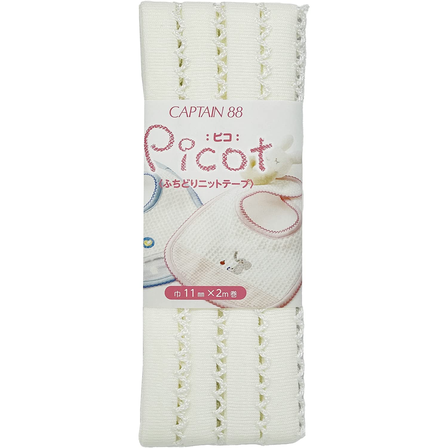 CAPTAIN88 キャプテン Picot ピコ ふちどり ニット テープ 11mm幅×2m巻 #2 オフホワイト×オフホワイト CP195