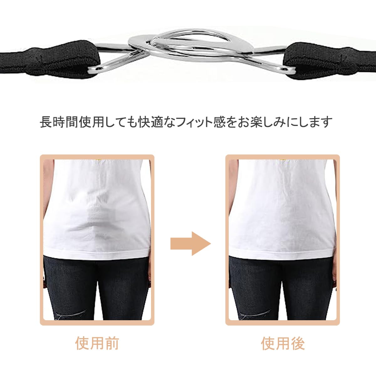 【着脱簡単】高い伸縮性と金属のバックルデザインにより、ベルトの装着と着脱が非常に簡単でストレスフリーです!このゴムベルトは位置調整が頻繁に必要な場合でも、迅速に対応することができます。