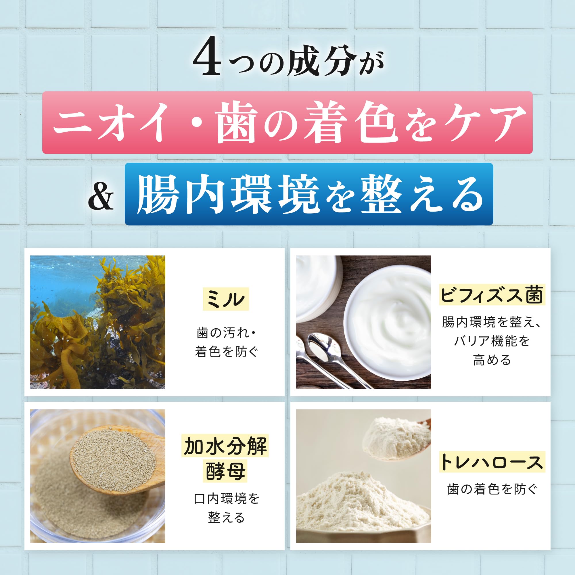 ?【歯石取り】ミル配合で口臭の原因となる歯の汚れ・歯石(プラーク)・着色を予防します。