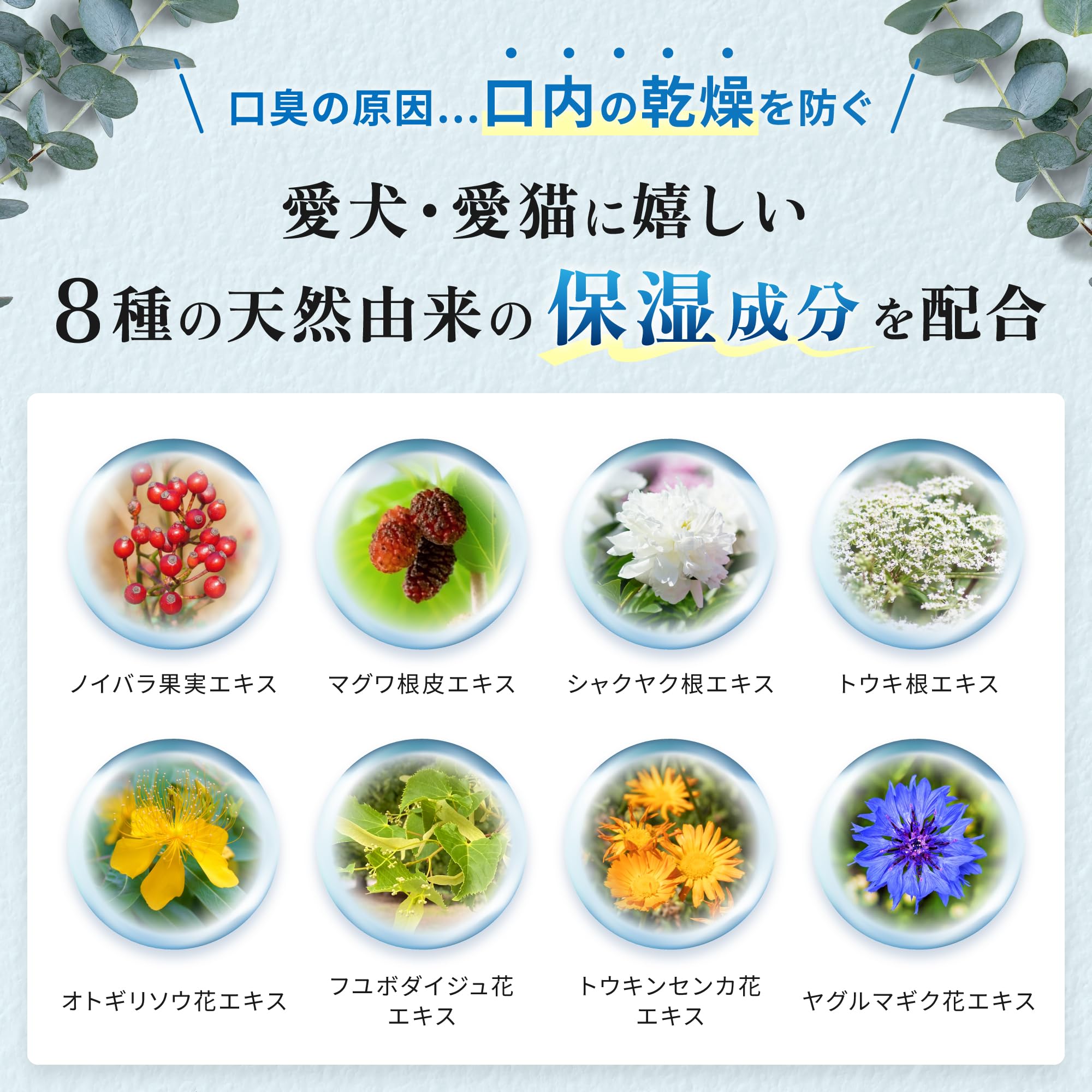 ?【口臭ケア】愛犬・愛猫の気になる口のニオイをすっきりケア。また、保湿成分も配合しており口臭の原因の乾燥を防ぎます。
