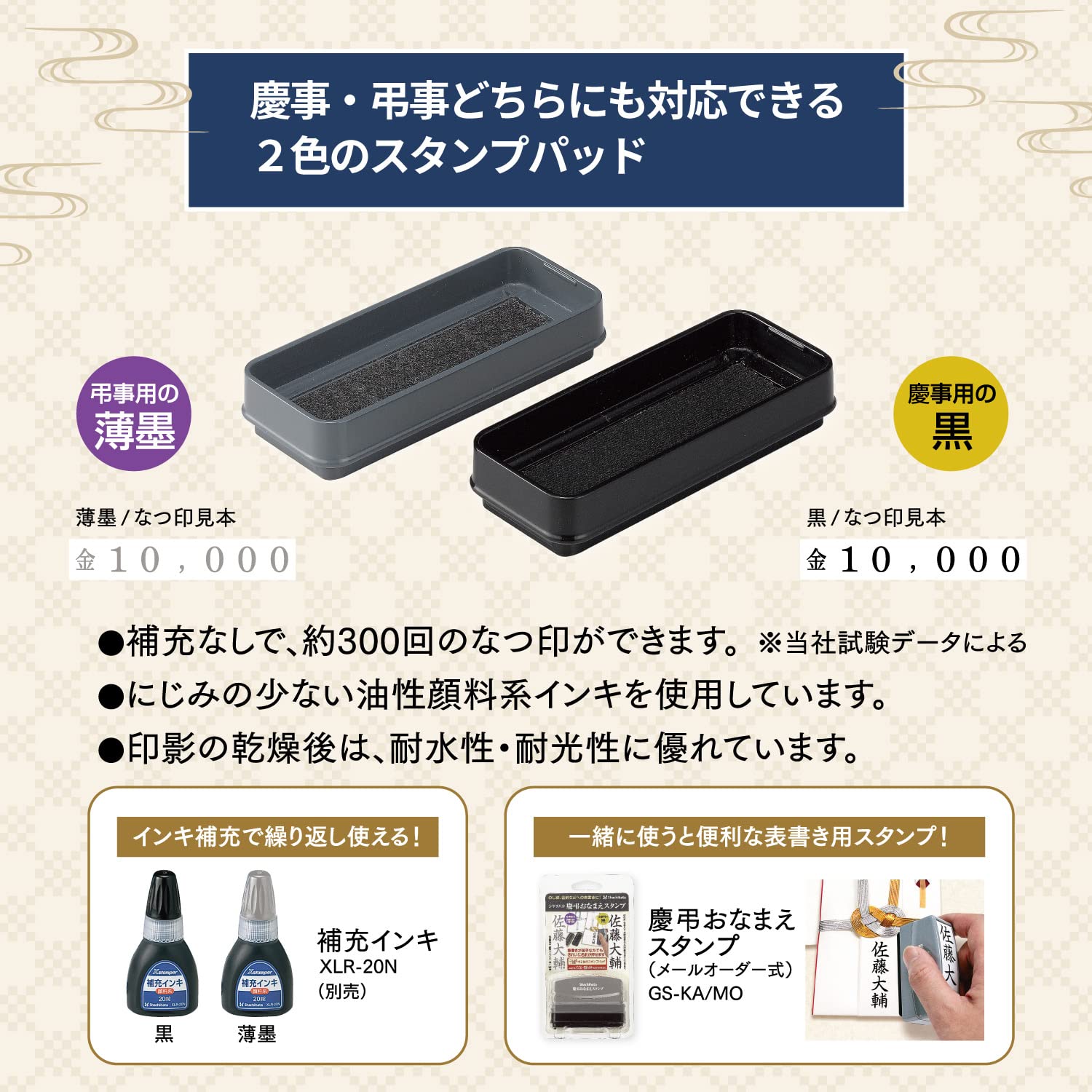 【スタンプパッドの本体サイズ】幅73mm×奥行30.6mm×高さ13.3mm(墨・薄墨2色) 【インキ補充】スタンプパッドはインキ補充で繰り返し使用可能。※補充インキは別売です。(補充インキ品番:XLR-20N)