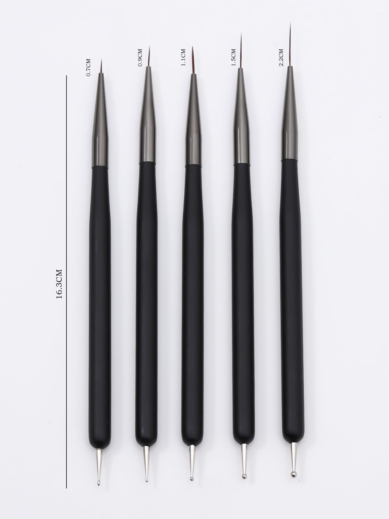 ZEOHBETY ネイルアートブラシ ネイルアートライナーブラシ5本 ドットペンツール ペインティングアートデザインブラシセット 長いライン用 細いディテールに ファインドローイングサイズ 7/9/11/15/22mm ブラック
