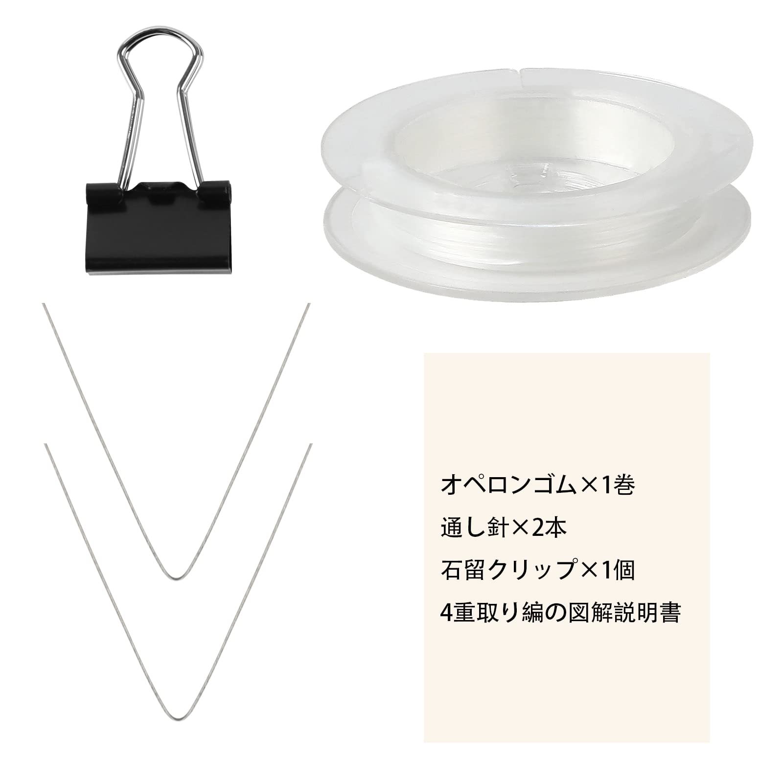 【セット内容】:約 0.8mm(約8M)オペロンゴム×1巻、通し針×2本、石留クリップ×1個、4重取り編の図解説明書 【色】:ホワイト