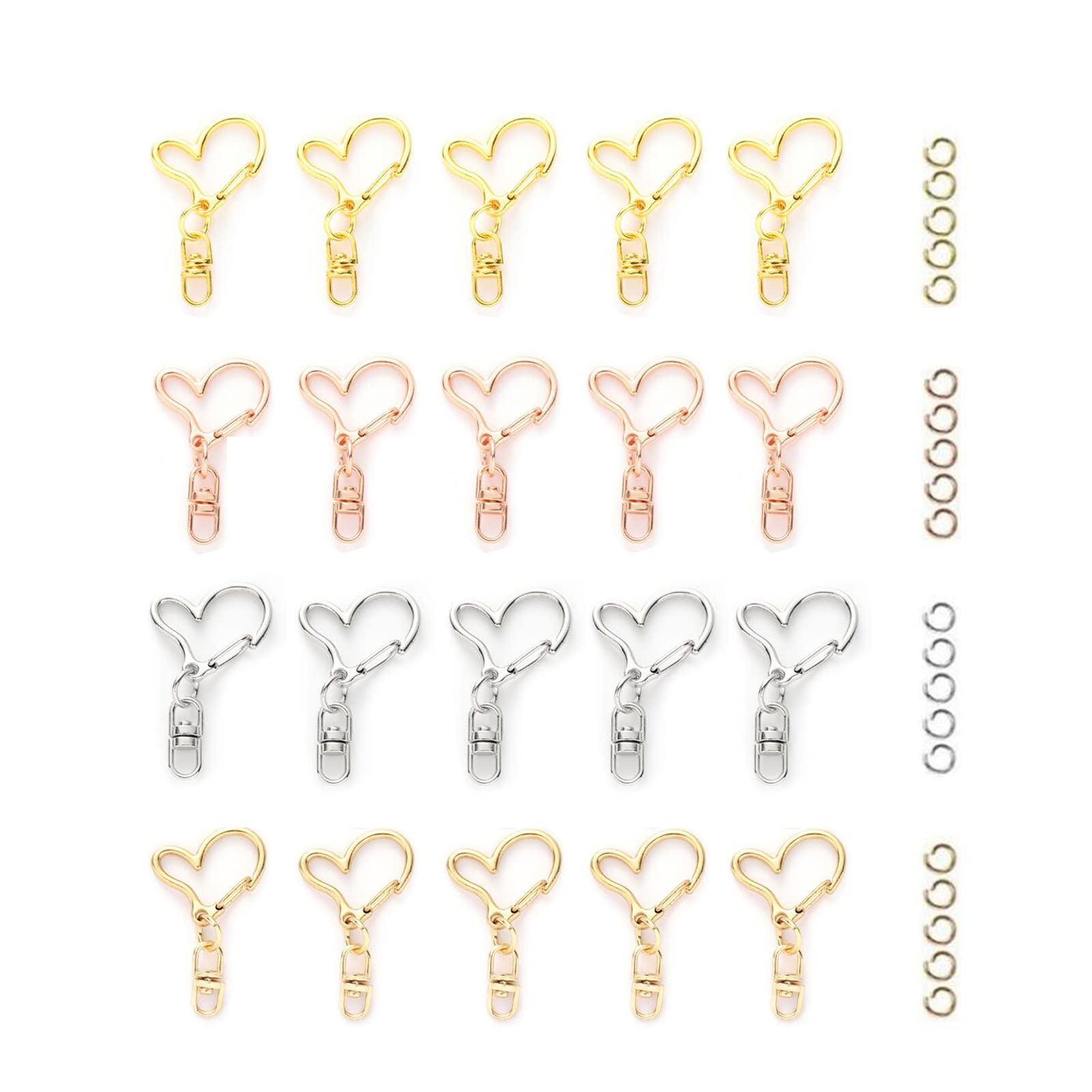 キーホルダー金具 20個 回転カン付き ワンタッチキーホルダー カワイイ DIY用パーツ 手作り キーリング シルバー ゴールドなど4色