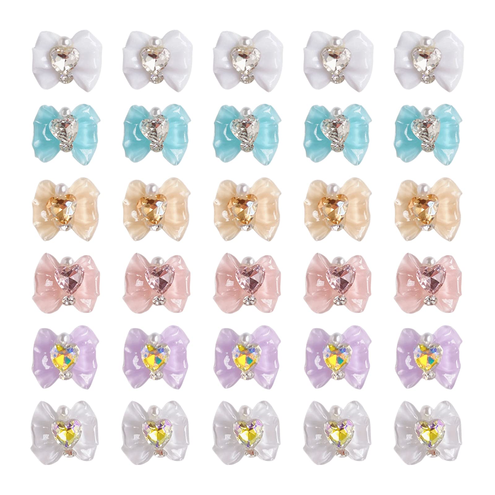 リボン ネイルパーツ 約30個セット 可愛い 大きい 蝶結び ネイルパーツ ストーン 3d 立体 パール ハート リボン パーツ ネイルアート ジュエリーパーツ 手芸 ハンドメイド デコパーツ (ミックス A)