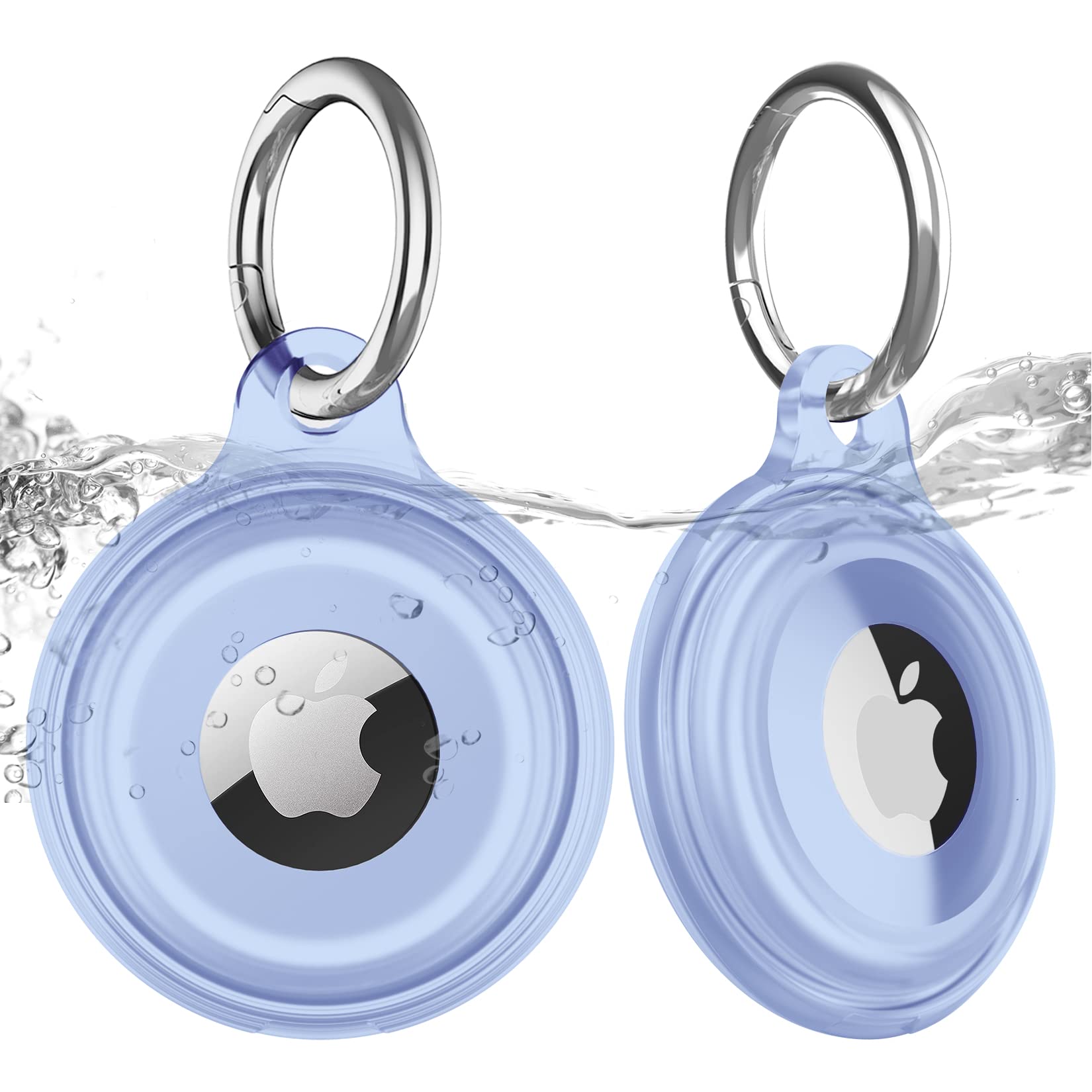 2枚セット AirTagケース IPX8防水 キーリング付き 軽量 耐衝撃性 全面保護 エアタグ用 取り付け簡単 紛失防止に適用 AirTagキーホルダー(青い)