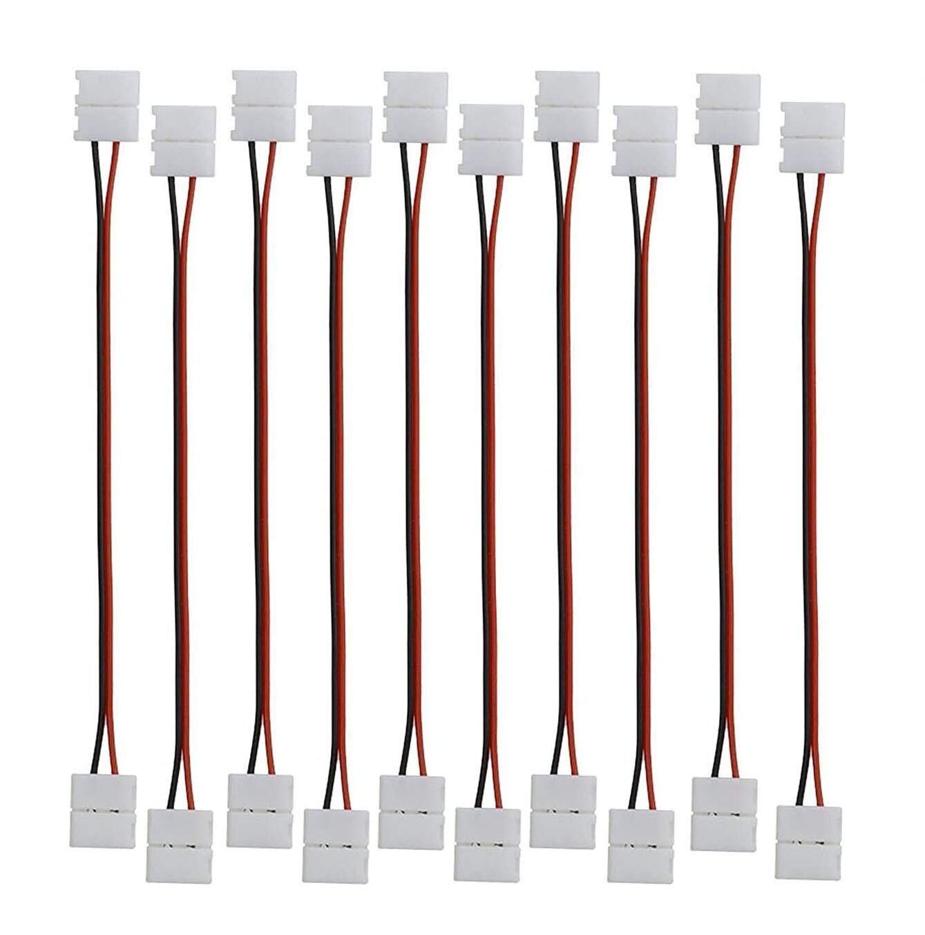 【在庫のみ】LitaElek LEDテープコネクタ2ピン8mm幅SMD 3528/ 2835 モノクロLEDストリップコネクタケーブル LEDテープジャンパーエクステンダー LEDリボンコーナーコネクタアダプタ LEDバンド延長ケーブル,長さ17cm(10個)