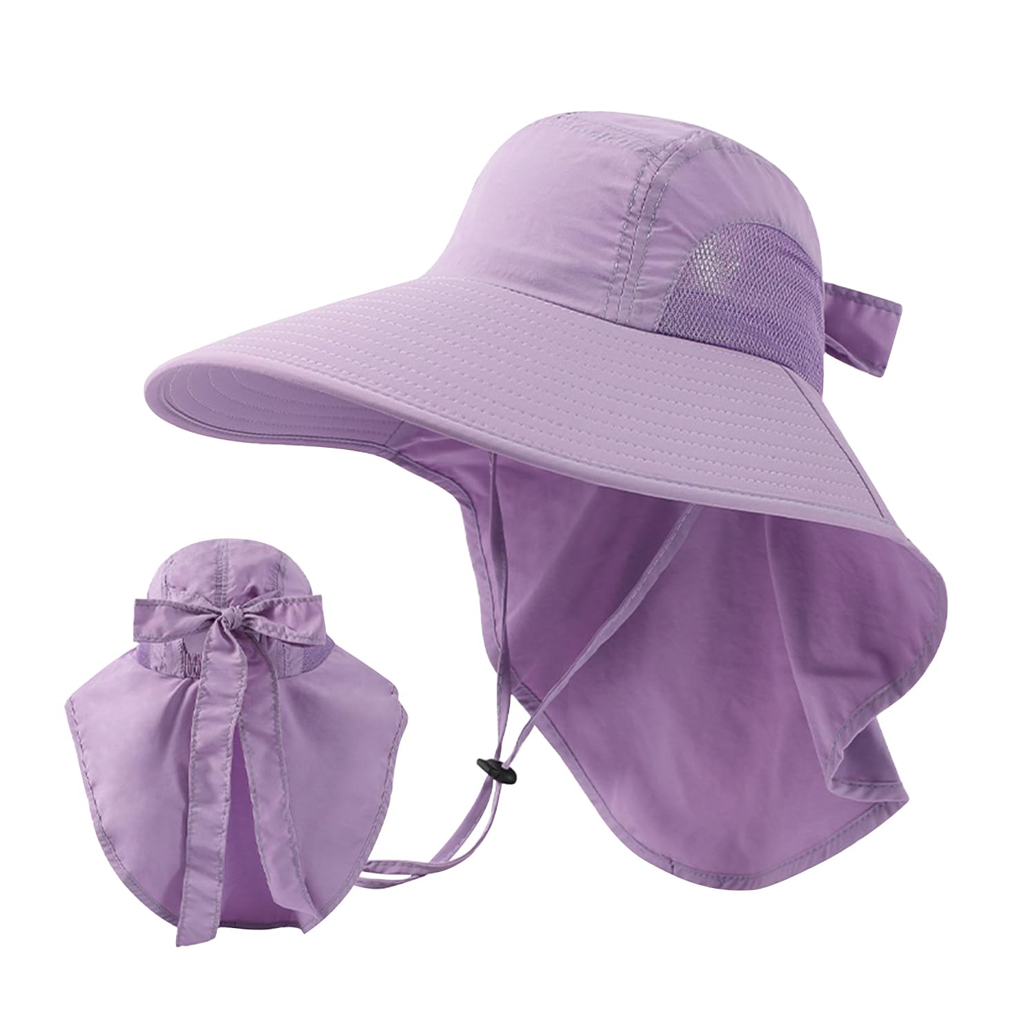 [ARSZHORSVS] UVカット 帽子 レディース つば広 首筋まで日焼け対策 接触冷感 完全遮光 ポニーテール穴付き 通気性 軽量 折りたたみ 持ち運び便利 あご紐付き 小顔効果 旅行 園芸 通勤 農作業 アウトドア 春夏 日除けハット
