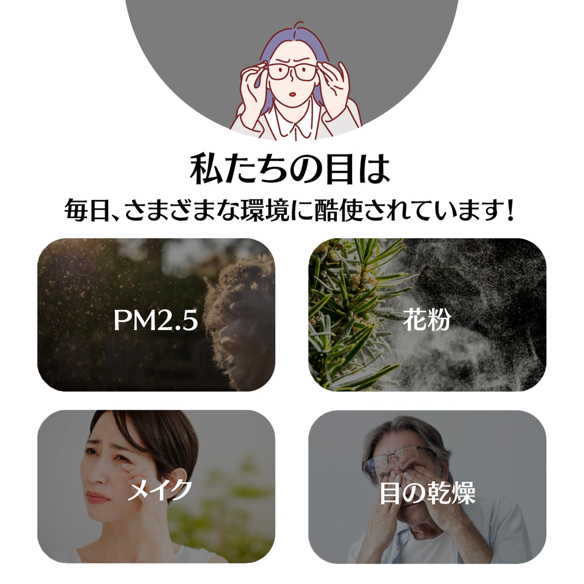 [幅広い用途] 水、生理食塩水、目洗浄液、ミネラルウォーターなど、さまざまな目洗浄液に対応しています。黄砂、PM、花粉、メイク残りの洗浄や、長時間の作業やデバイス使用後の乾燥した目をケアするために活躍する目洗浄ツールです