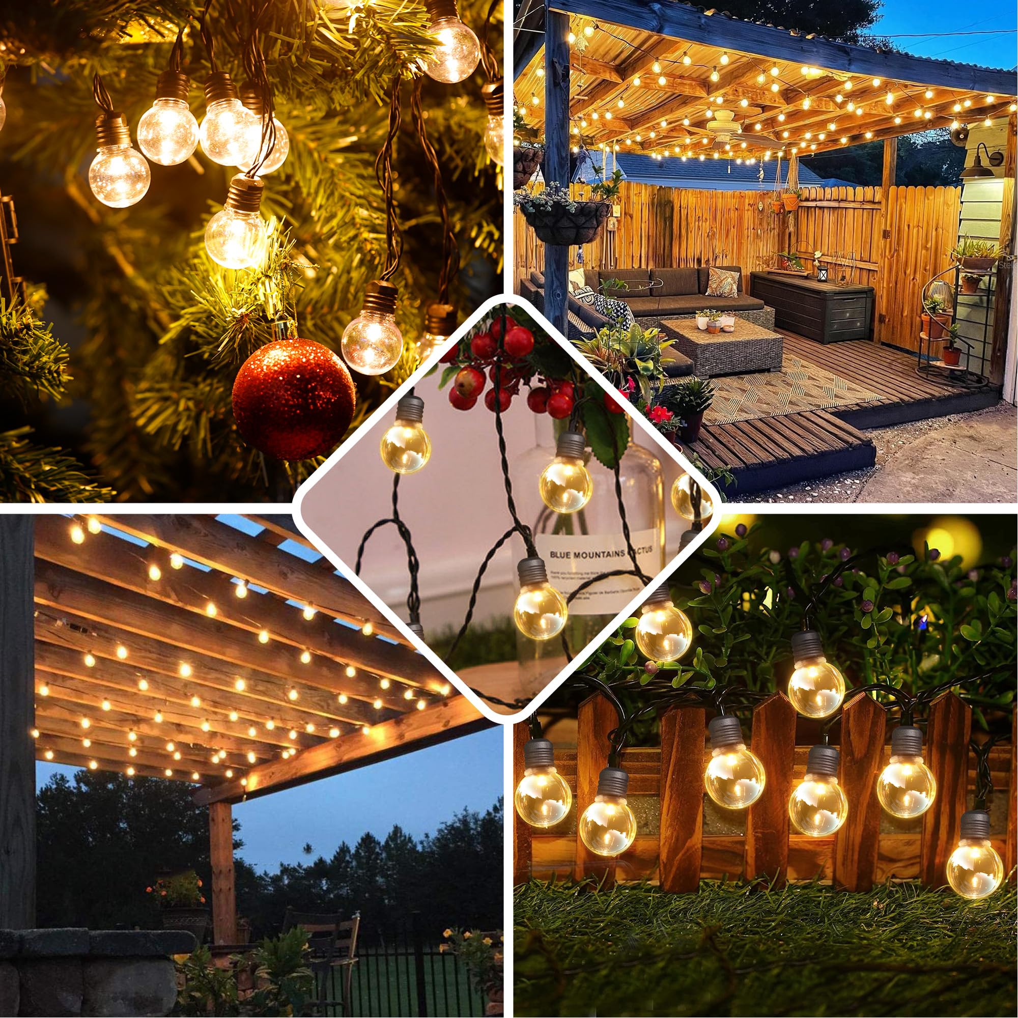 『防雨・破損しにくい』:電球は破損しにくい環境に優しいPC素材で作られており、ガラス電球ほど脆弱ではありません。フェアリーライトにはIP64の防水機能が設計されており、電球の底には水が溜まらないように小さな穴が空いているので、屋内でも屋外でも使用でき、お好みの場所に簡単に設置することができます。