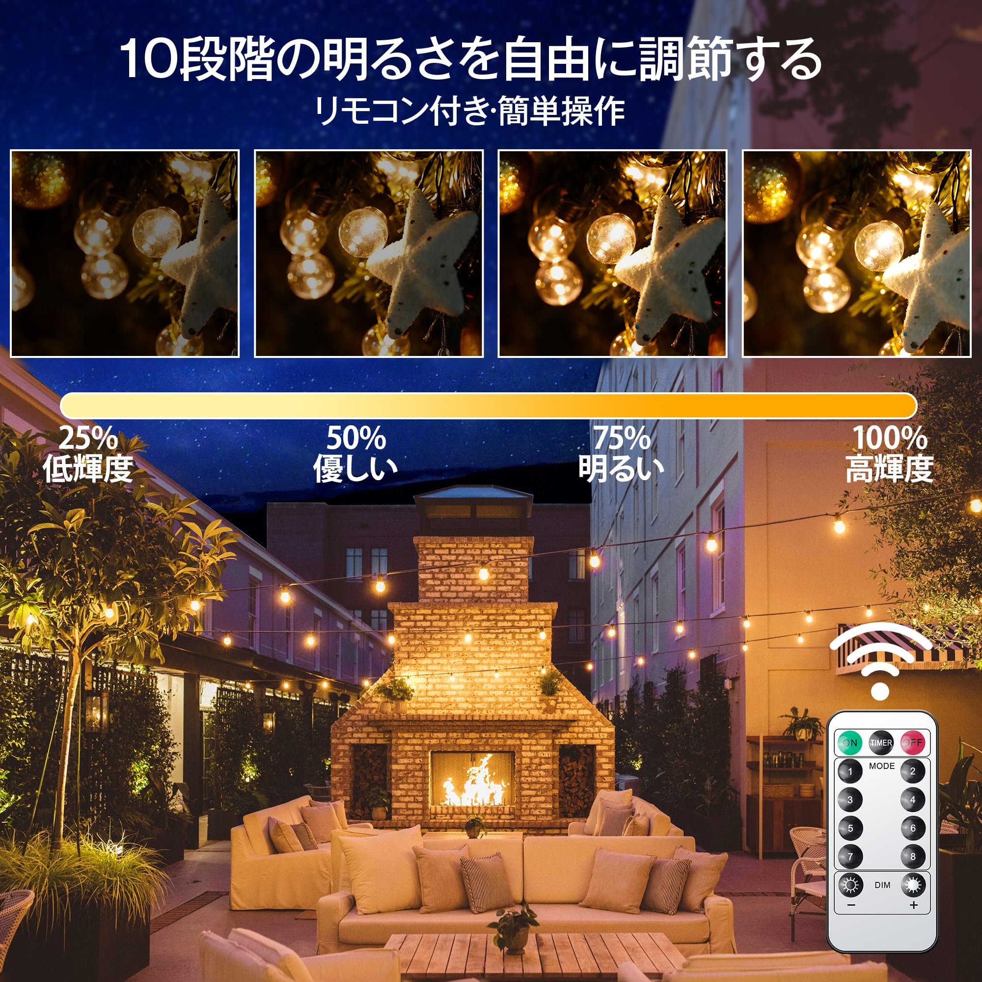 『8つの点灯モード・リモコン付き』:電池式ストリングライトには8つの照明モード、10つの明るさ調整、6時間のタイマー機能があり、リモコンを使用するとモードの切り替えや各種設定の完了が簡単にできます。イルミネーションライトには記憶機能設計があり、最後に設定したモードを自動的に保存し、再点灯するモードはオフ前のモードで、繰り返し設定する必要はありません(リモコンで制御する必要があります)。