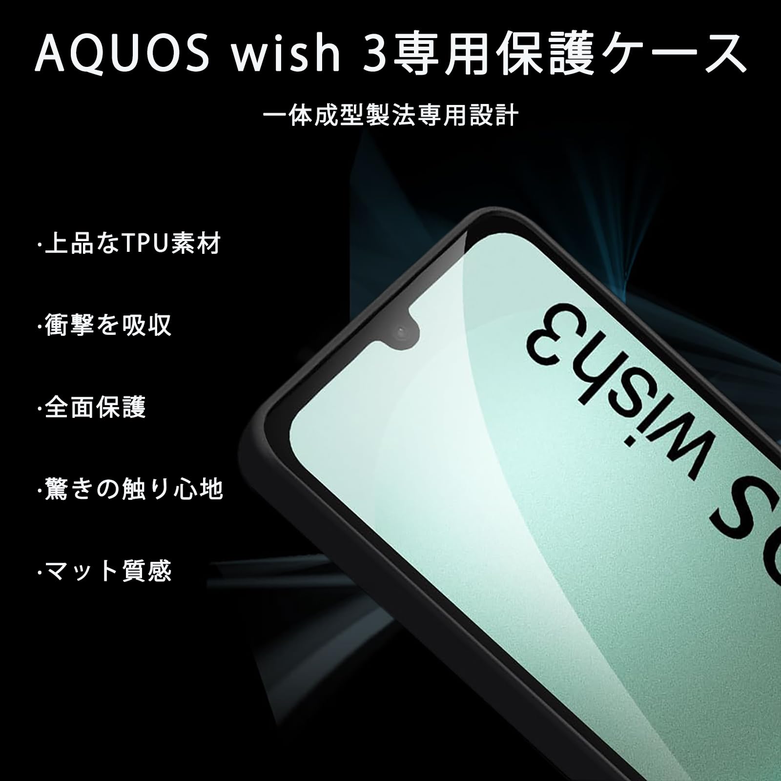 LAYJOY 対応 AQUOS wish 3 ケース ソフト シリコン 黒 TPU 薄型 カバー [傷防止 軽量 柔軟 薄型 耐衝撃 携帯便利] 全面保護 SH-53Dスマホケース 対応 (マットブラック)
