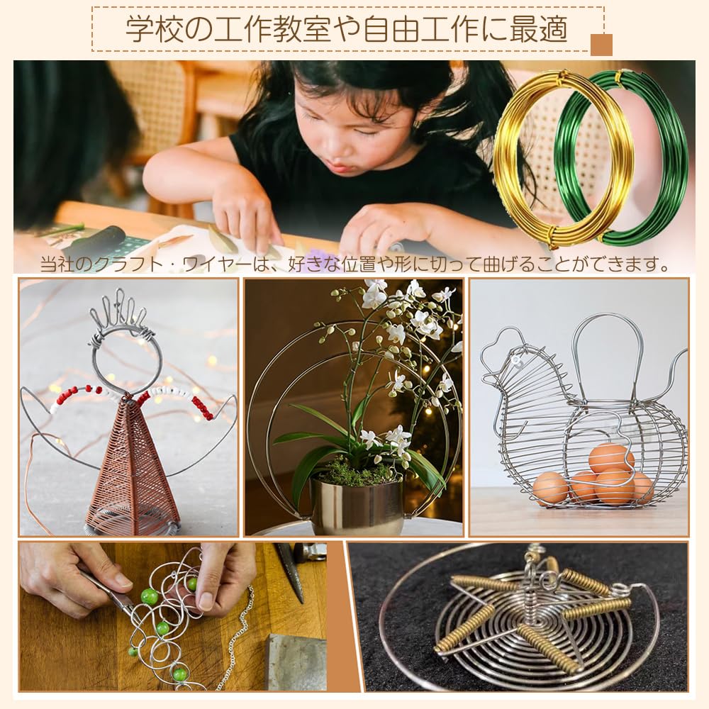 多様な用途: この金属ワイヤーは、さまざまなプロジェクトに使用できます。フラワーアレンジメントに使い、らせん状に曲げてブーケに。植物をつるに取り付けるのにも使えます。ワイヤー模型やクリスマス/その他のデコレーションにも。当社のクラフト・ワイヤーは、好きな位置や形に切って曲げることができます。