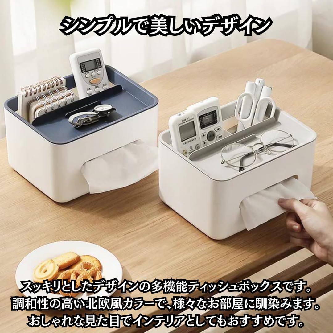 Charmoon ティッシュケース 小物入れ スマホ リモコン ラック 北欧 シンプル おしゃれ 卓上 収納 (グレー/ホワイト)
