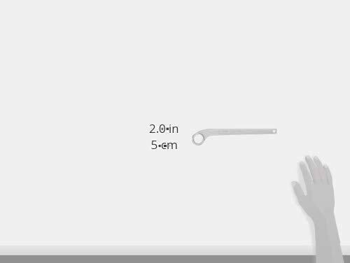 めがね部は12角、柄に対して40度の角度を持っています。これは普通のめがねレンチと違って、柄が上下方向に曲がっていなく、口だけが角度を持っているので使う場所によっては大変便利に使えます。片口めがねレンチ口径 22mm 全長 232mm 200g頭部外径 34ミリ頭部厚み 14.5ミリ