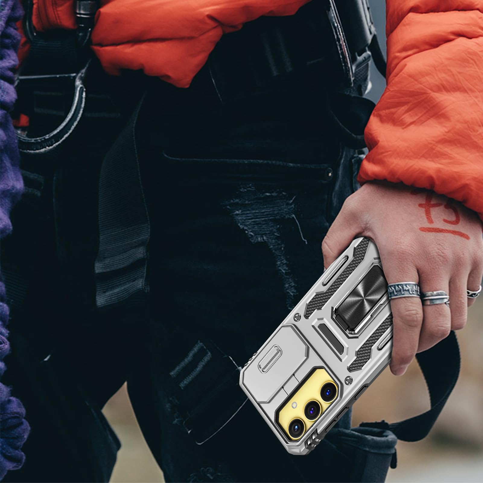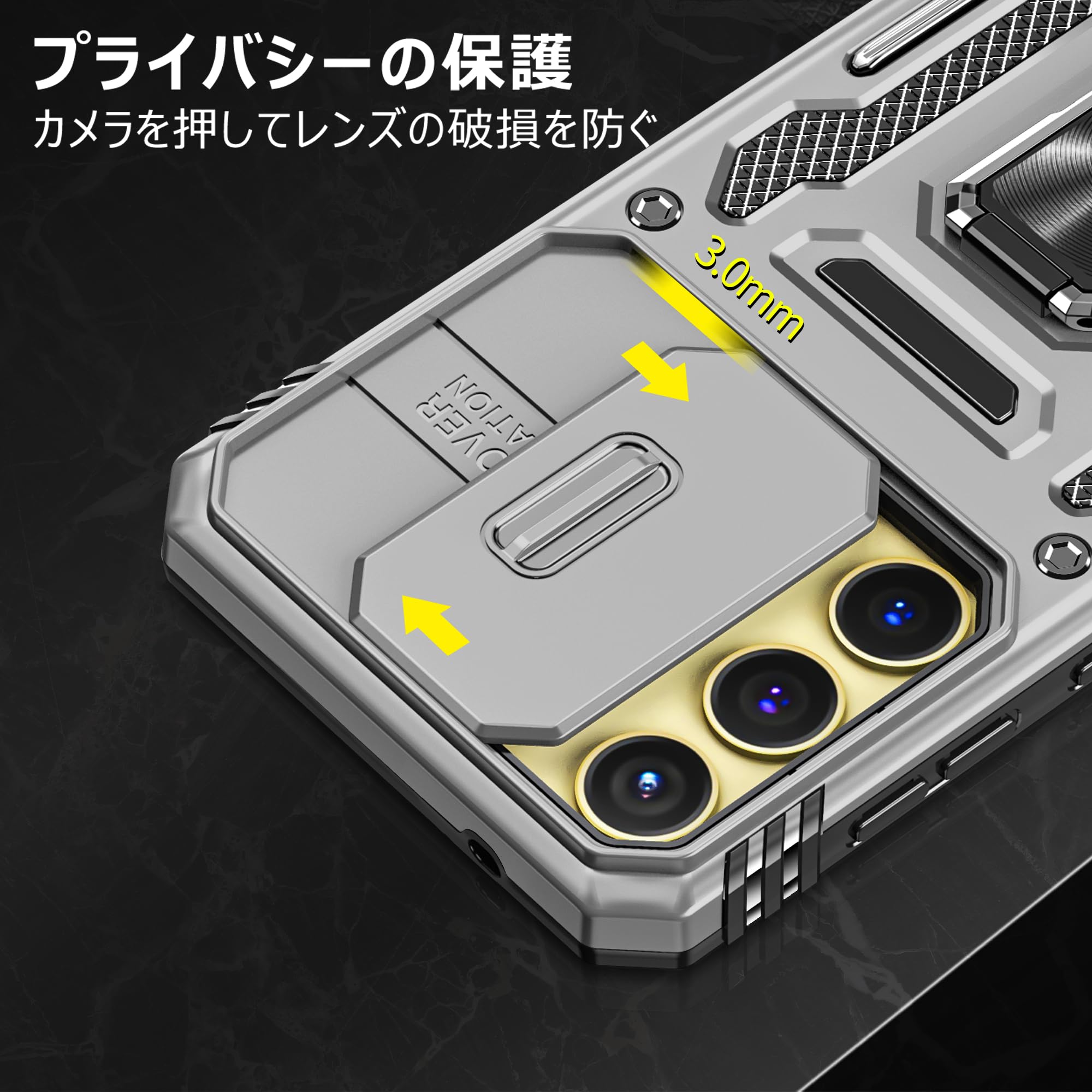 Galaxy S25 用 ケース リング付き 衝撃吸収 耐衝撃 スタンド機能 米軍MIL規格 ギャラクシーs25 用ケース 全面保護 360°回転 滑り落ちにくい 人気 おしゃれ 携帯カバー グレー WY95-155