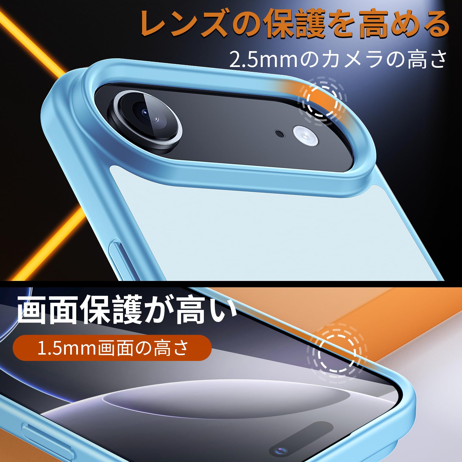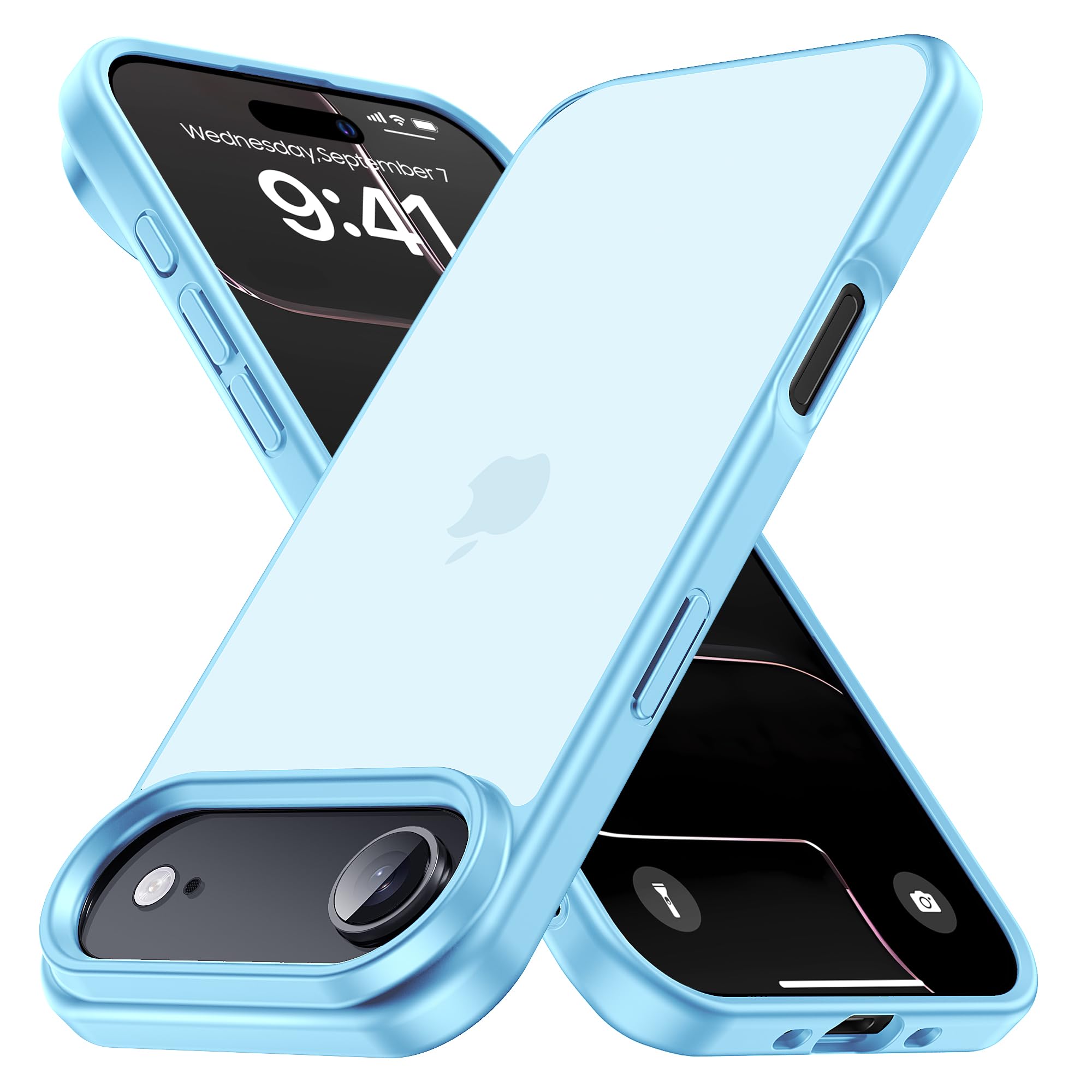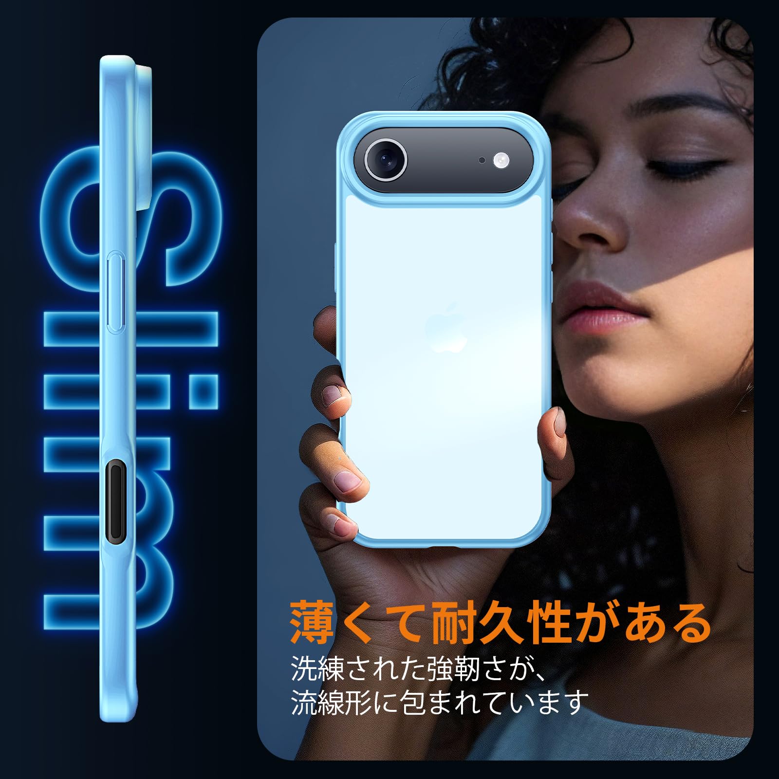 【在庫のみ】COSOIK iPhone Air 用 ケース 滑り止め 指紋防止 米軍MIL規格 耐衝撃 マット仕上げ ストラップホール付き アイフォンAir 半透明 黄変防止 耐久性 カバー ワイヤレス充電対応 あいふおんAirケース 6.5 インチ イトブルー