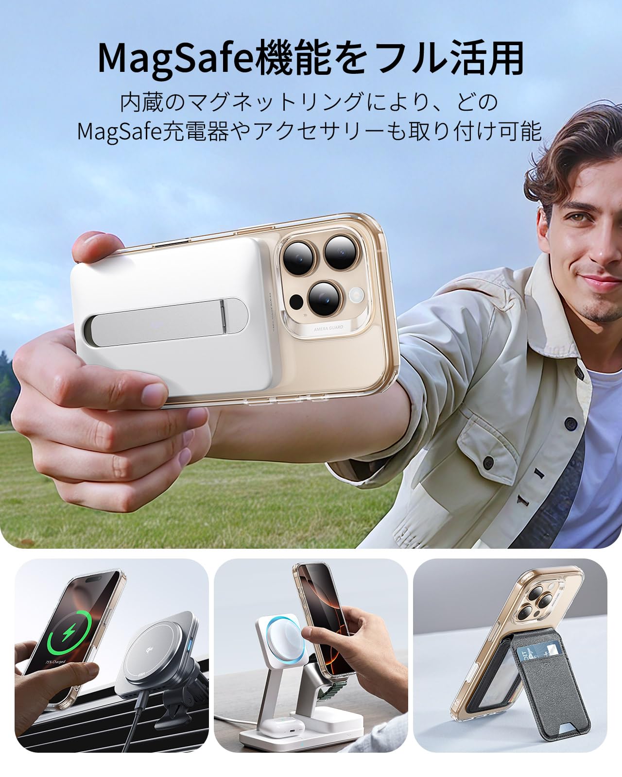 【ズレない・外れない!最強マグネット〈1,500gの保持力〉】 業界トップクラスの強力磁力(1,500gの保持力)を内蔵した いPhone16Pro ケースです!MagSafeワイヤレス充電器やアクセサリーが瞬時に「ピタッ」と吸着するため、満員電車や急いでいる時でも位置調整の手間が不要です。充電中のずれ落ちやアクセサリーの外れが心配ない設計で、移動中やアウトドアでの利便性が格段に向上します