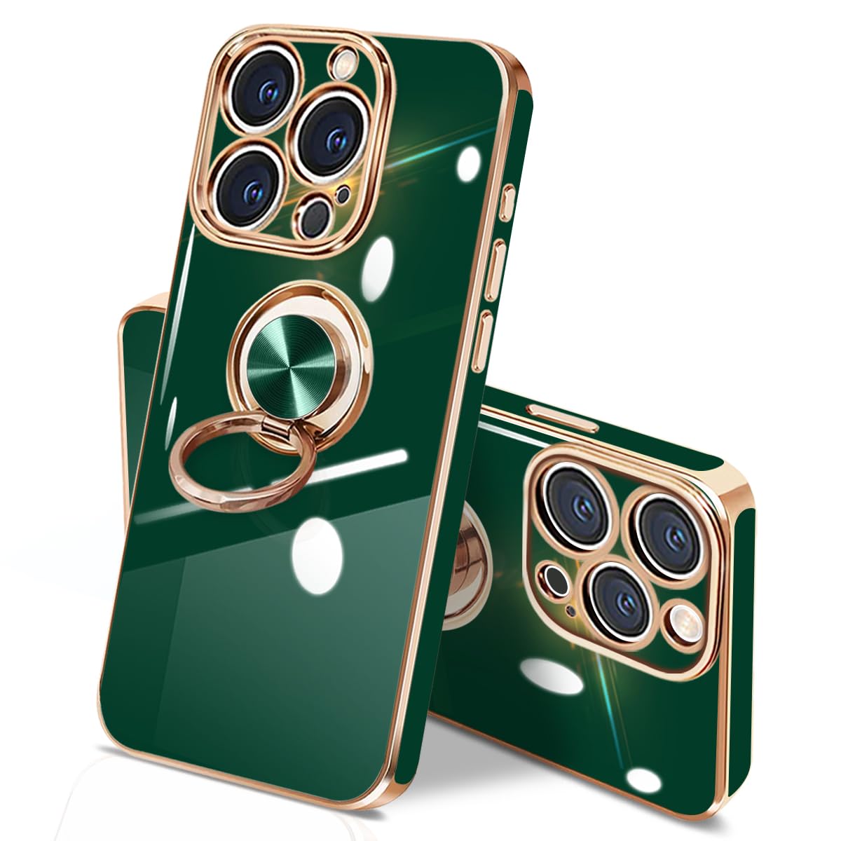 danliangqifei iPhone 16 Pro Max ケース リング 耐衝撃 360°回転 スタンド機能 車載ホルダー対応 カバー アイフォン16Pro Maxスマホケース 携帯ケース 保護カバー レンズ保護 ストラップホール付き(グリーン)