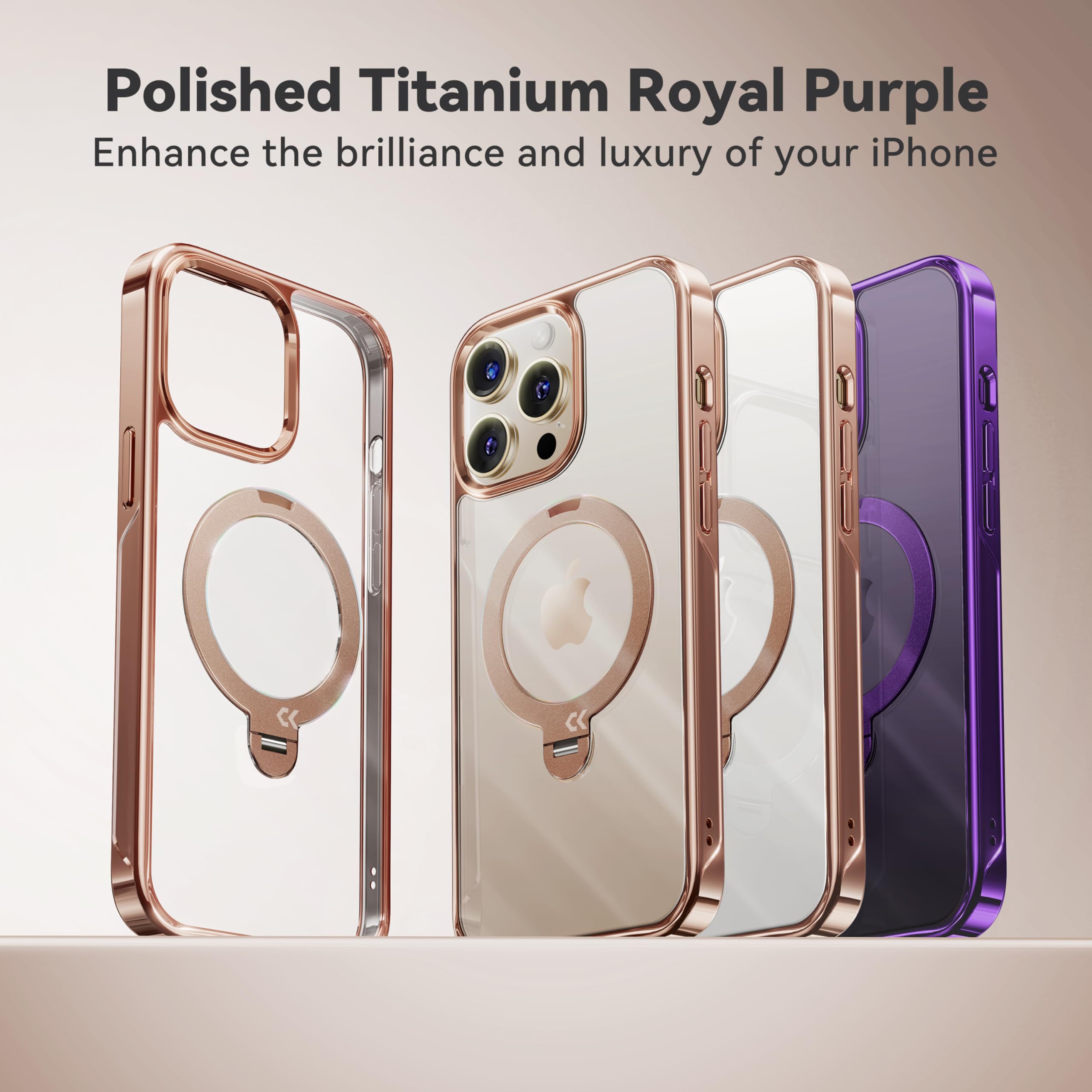 【透き通る上質感・定点360°回転】CASEKOO iPhone 14 Pro Max 用ケース クリア 米軍MIL規格 金属感 フィット感 MagSafe対応 ワイヤレス充電 横縦両立 角度自在 超強磁力 耐衝撃 高耐久性 ラップホール付き 透明 黄変防止 いphone14pro max 用ケース「MagicStand Pro Kosai」(ゴールド)