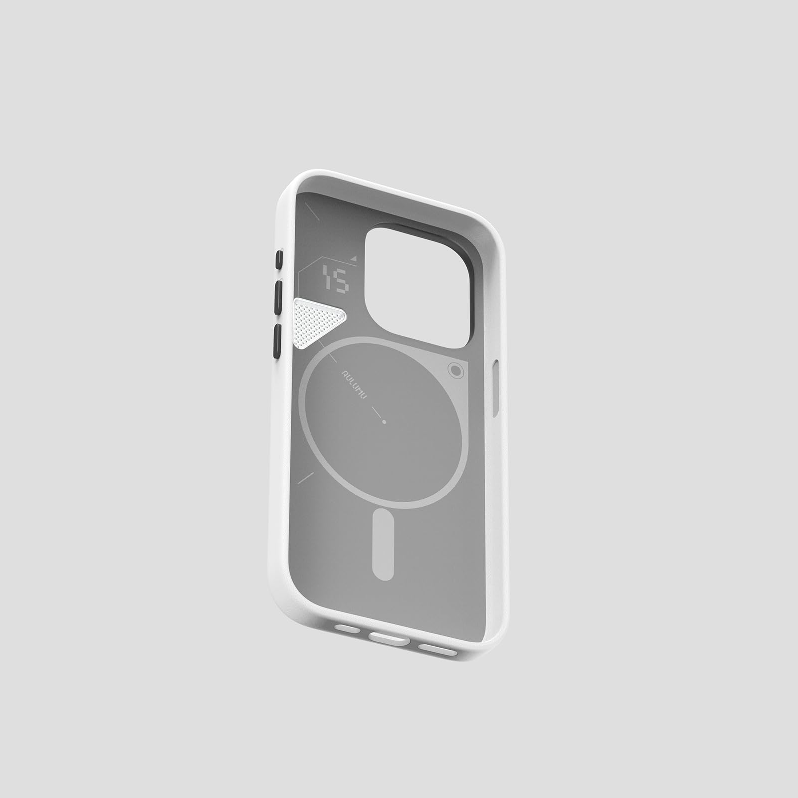 【在庫のみ】Aulumu A15 iPhone 15 Pro用 ヴィーガンレザー マグネットケース クールデザイン窓付き MagSafe対応 金属ボタン ホワイト